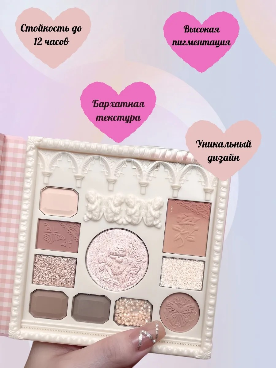 Eyeshadow is the perfect choice for creating a variety of delicate and extravagant looks! This eyeshadow palette includes 10 shades, 5 of which are matte and 4 are shimmery. Our set features a perfectly coordinated palette of eyeshadow colors, allowing you to confidently combine them and use them as a base for other, brighter shades. With our palette, you can be bold in your experiments and open to new makeup ideas. It can also be used as a contouring palette. Made from high-quality ingredients, you can confidently use it daily without worrying about the delicate skin around your eyes. These eyeshadows aren't just for eyelids; they're also suitable for contouring and will easily highlight your brows. While shimmery shades can be safely used as a dry highlighter! These eyeshadows are highly pigmented, apply comfortably, and resist flaking or creasing, allowing your makeup to stay fresh and neat all day long. This creative scope allows you to create a variety of looks for all occasions, including birthdays and everyday wear to school or work. Our eyeshadows will highlight your natural eye beauty and add a more sophisticated touch. The product is easy to blend to create a gradient, and to remove makeup at the end, simply use micellar water or cleansing oil.