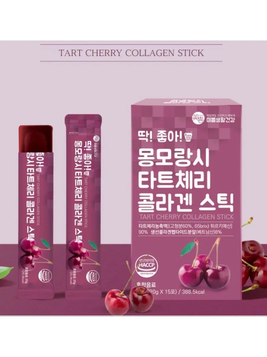 | Package contents | Marine collagen with cherry juice extract Tart Cherry "jelly stick". |