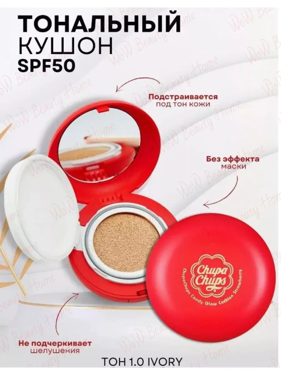 Предлагаем вашему вниманию новинку в нашем магазине, замечательный, Корейское средство для лица Chupa Chups, с мощным увлажняющим и солнцезащитным фактором и эффектом консилера. Кушон "Chupa Chups"не только скрывают недостатки и синяки, но и дарят качественный уход за лицом. Уникальная технология приспосабливает средство под естественный тон лица и не создает эффекта "маски". Кушон Chupa Chups - это жидкое средство, спрятанное под губку, в удобной пудренице. Наносить его следует спонжем, имеющимся в комплекте или своим дополнительным. Специальные микро-пигменты создают на коже идеальное покрытие, рассеивающее свет, благодаря чему кожа выглядит более светлой, свежей и чистой. Диоксид кремния в составе средства регулирует работу сальных желез, предупреждает появление жирного блеска и оберегает макияж от растекания. Кроме маскирующих функций, средство также хорошо увлажняет кожу, успокаивает ее и предупреждает появление сухости и шелушений. Он изготовлен из натуральных ингредиентов, которые не препятствуют выработке коллагена. Жидкая текстура безопасна для глаз и может быть скорректирован в соответствии с тоном кожи без использования корректоров. Легкая текстура на основе порошка минеральных энзимов и экстракта авокадо защищает от акне и темных пятен; защита лица SPF-50 предохраняет от солнечных ожогов и загара.