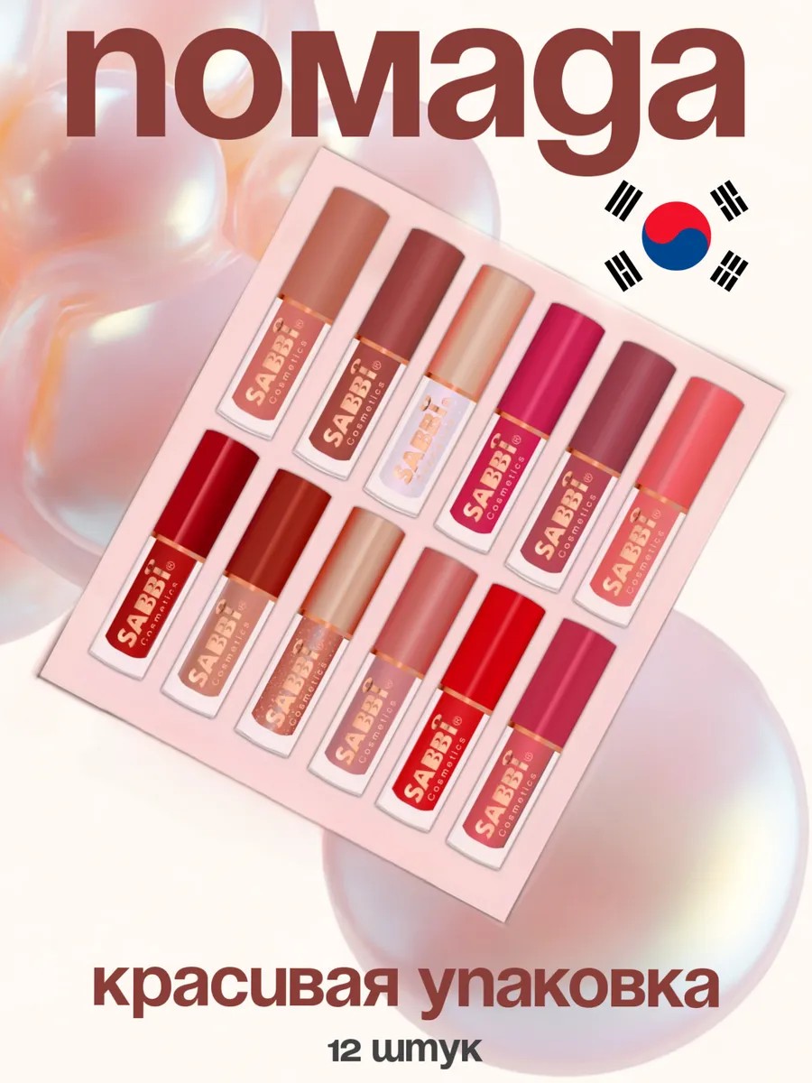 Помада для губ матовая Sabbi, 12 оттенков Корея