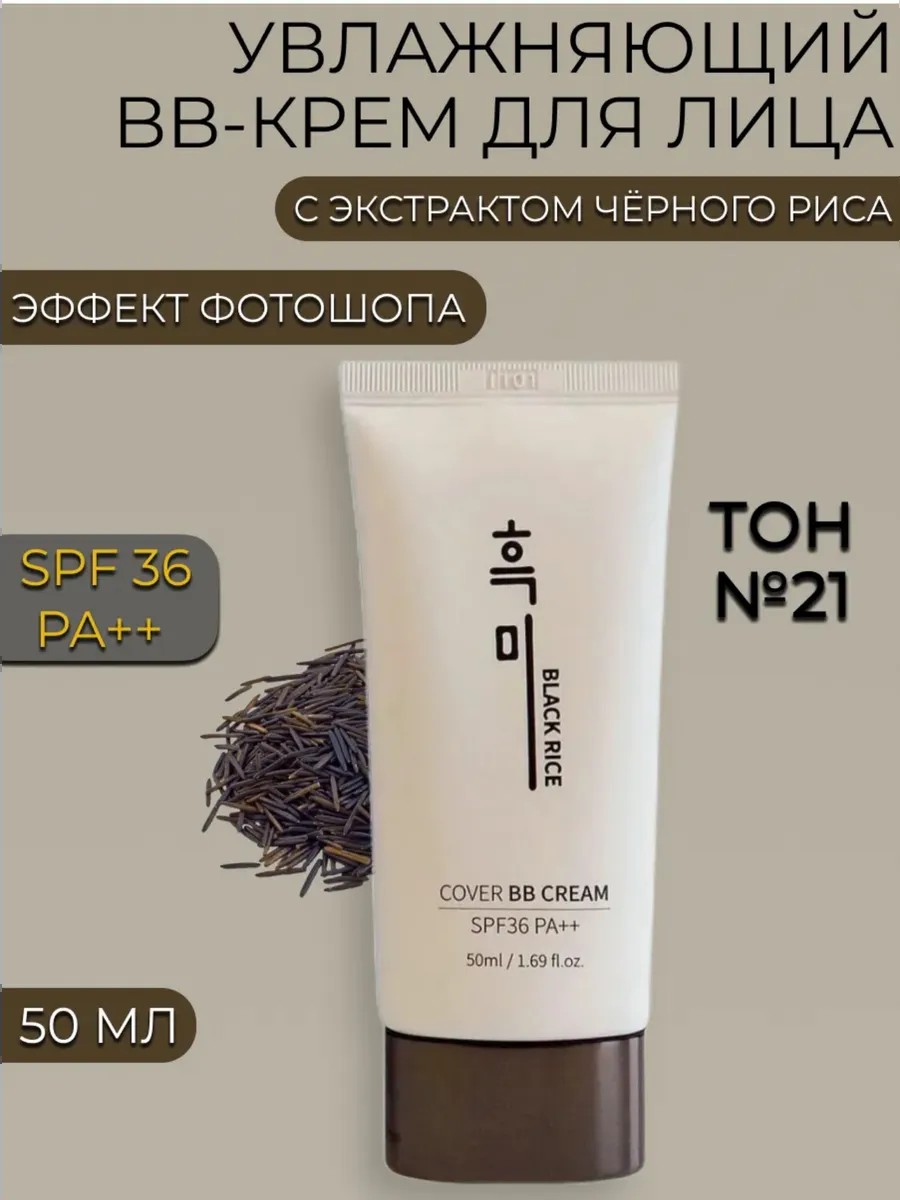 Увлажняющий Cover ВВ крем Black Rice 21 SPF36 с экстрактом чёрного риса подстраивается под тон кожи, создавая лёгкое покрытие, разглаживая рельеф и выравнивая тон. Он увлажняет и смягчает кожу, отлично тонирует, не закупоривая поры и не вызывая воспалений.