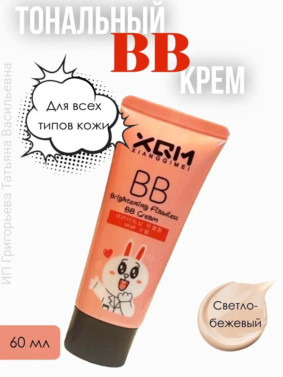 Распределять его по лицу нужно пальцами или специальным спонжем. Матирующий крем отлично наслаивается и смотрится натурально, легко подстраиваясь под кожу. Универсальный оттенок крема подходит для любого типа кожи, подстроится под ваш тон. Крем ВВ - это простой в использовании продукт, который делает вашу кожу здоровой, гладкой и естественной. ВВ крем с зайкой XQM BB Cream - тонизирующий,легкий и увлажняющий - маскирует мелкие несовершенства.