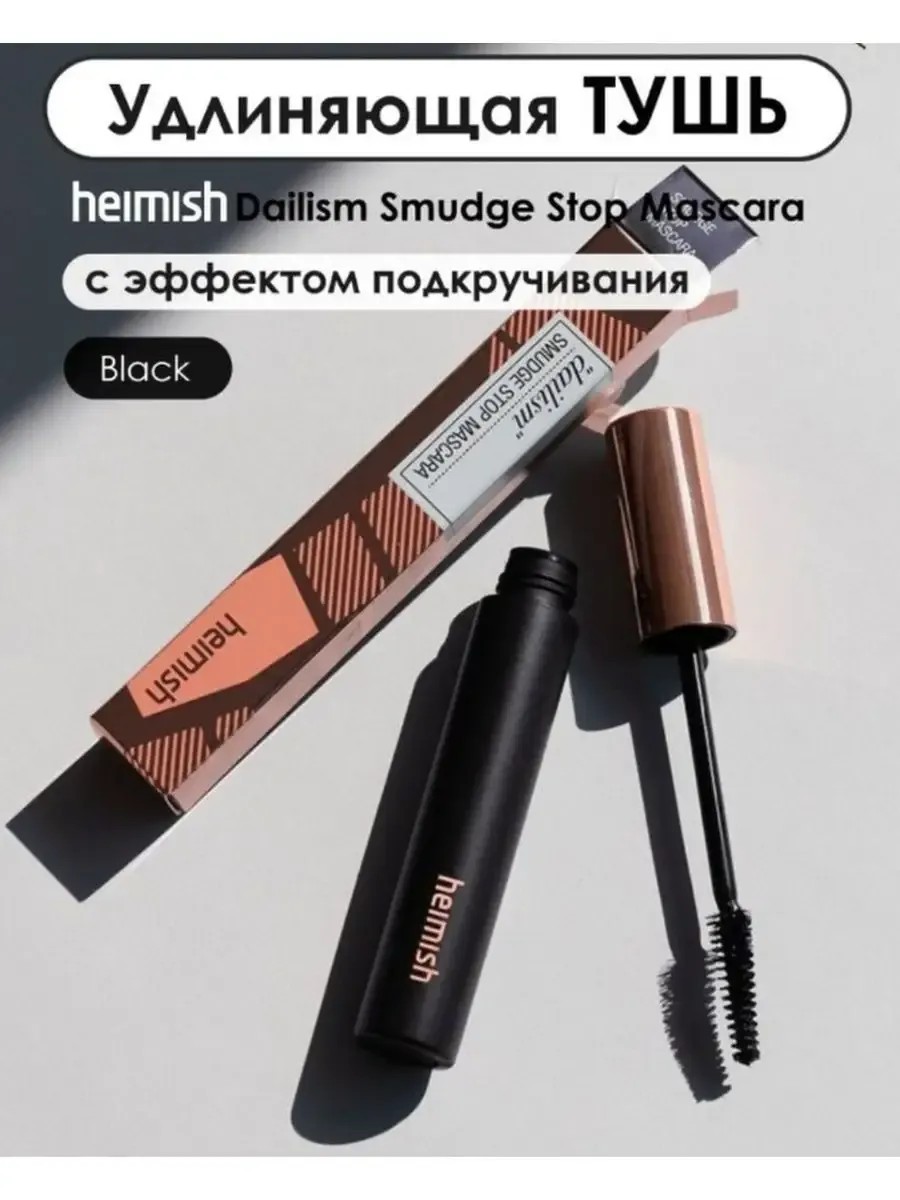 Классическая тушь Dailism Smudge Stop Mascara от Heimish с изогнутой щеточкой подкручивает и удлиняет ресницы, аккуратно разделяя их.