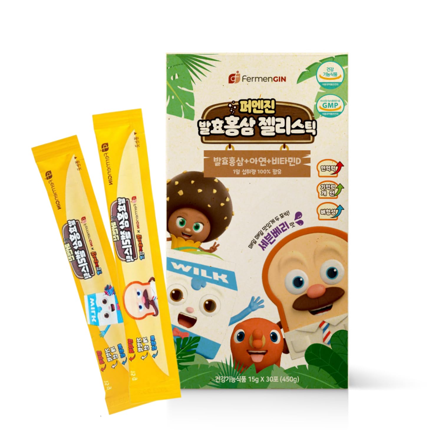 Korean Food Fermented Red Ginseng Jelly Stick Berry Flavor Jelly Stick 30 Sticks Total 15.9 oz (450g)