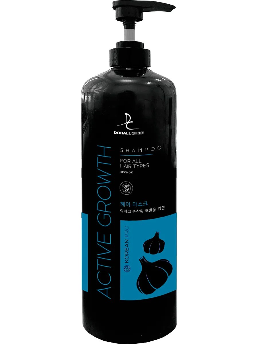 Large 1.2-liter bottle with a dispenser. KOREAN PRO DORALL COLLECTION Active Growth shampoo for hair growth with garlic extract was developed in Korea. It has a beneficial effect on the scalp: it strengthens the roots, prevents premature hair loss, and stimulates the growth of new hair. It actively improves blood circulation in tissues, activates renewal processes, and awakens dormant hair follicles.