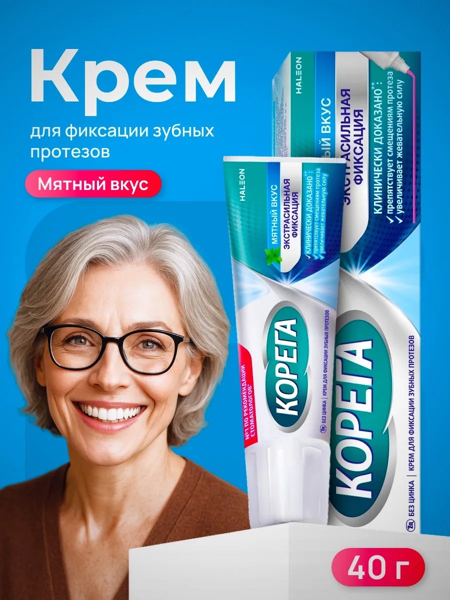 Крем для фиксации протезов Корега мятный вкус — ваша уверенность на 12 часов!