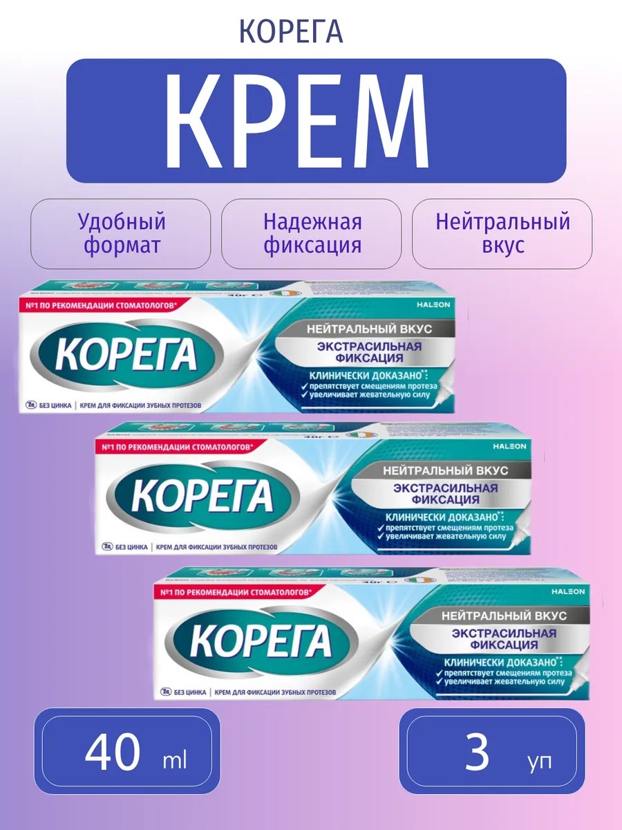 Корега Крем для фиксации Нейтральный вкус 40 мл-3