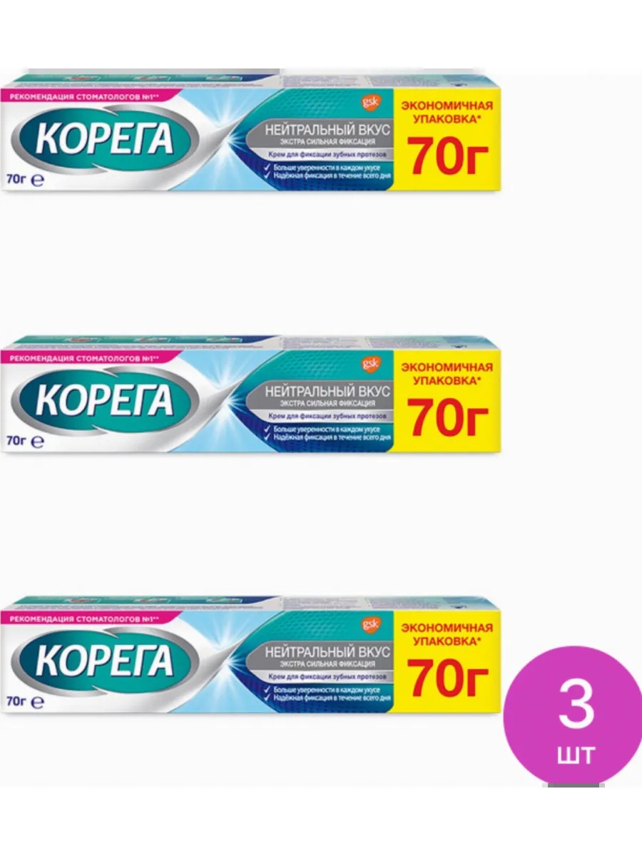 Корега Крем для фиксации зубных протезов 70г, 3 шт