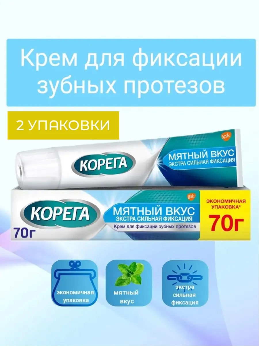 Корега Крем для фиксации зубных протезов экстра сильный 70г 2 шт