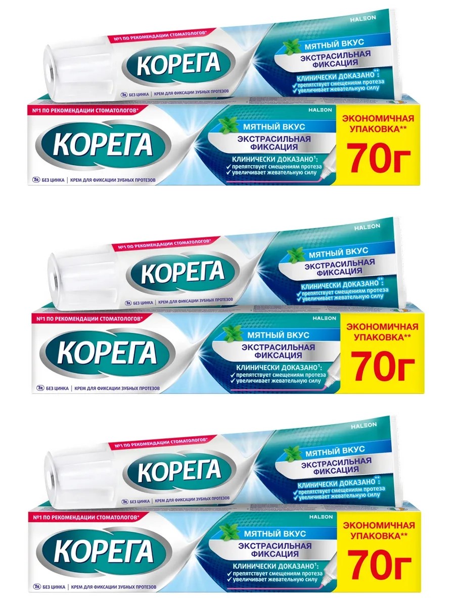 Корега Крем для фиксации зубных протезов мятный 70 гр. - 3 шт.