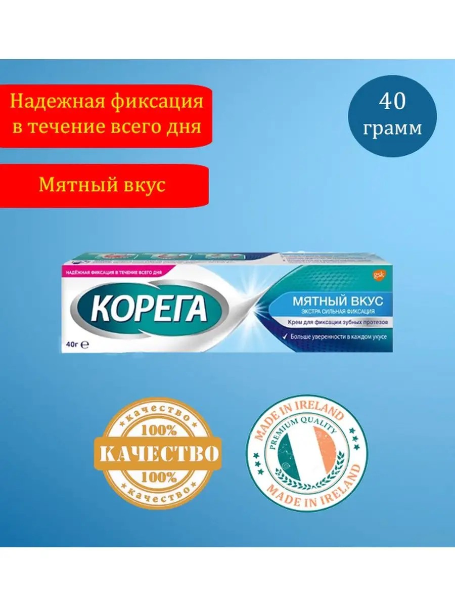 Надежная фиксация зубного протеза придаст вам уверенности и позволит заботиться о более важных вещах. Крем для фиксации зубных протезов Корега Экстра сильный мятный повышает качество жизни людей, использующих зубные протезы: Предотвращает попадение частичек пищи под протез* за счет всесторонней фиксации. Крем фиксирует зубной протез на целый день, позволяя вам забыть о дискомфорте в течение 12 часов**. Освежает дыхание за счет ультрасвежего мятного вкуса, придавая дополнительное ощущение свежести во рту. Не содержит цинк.