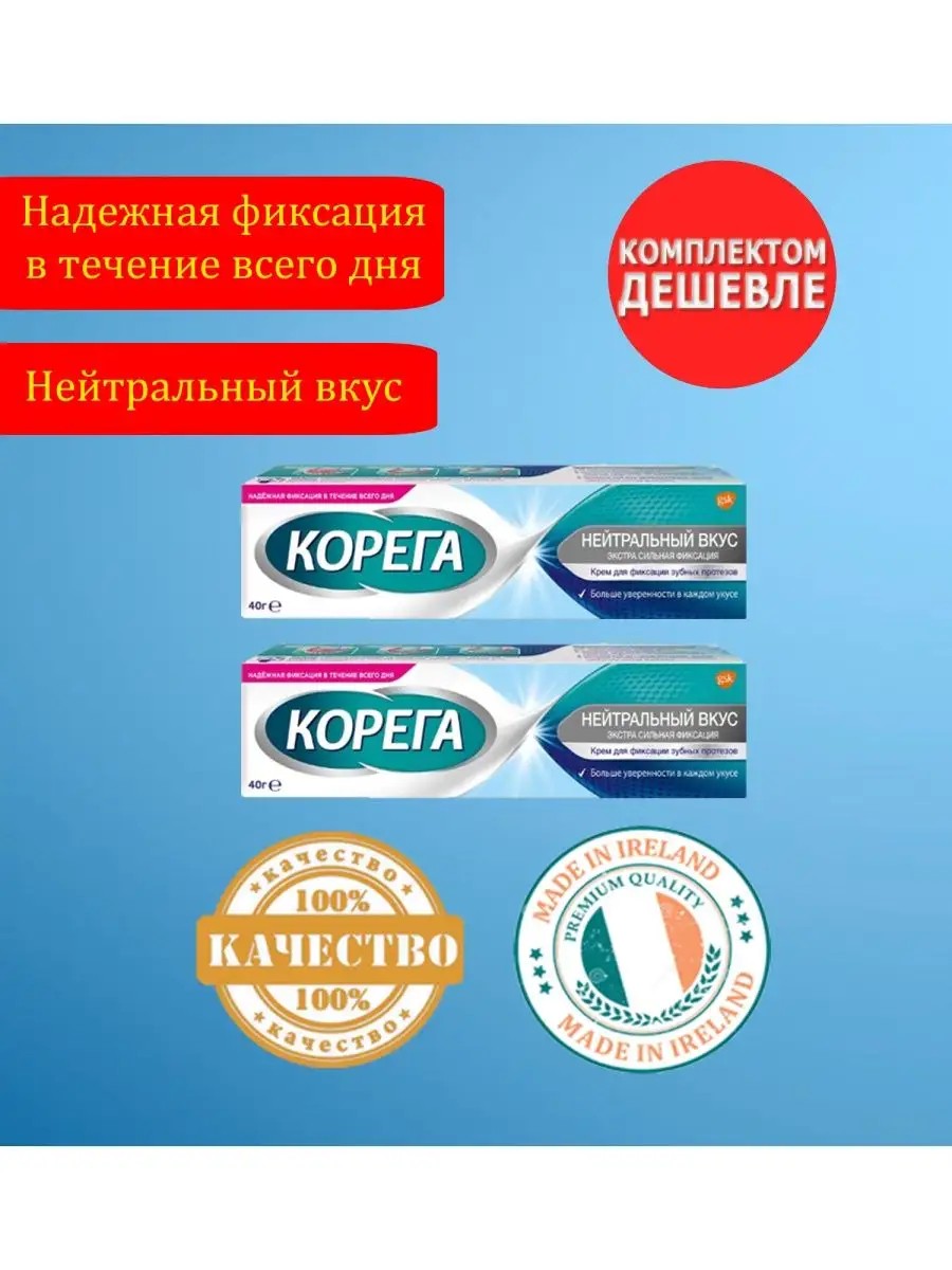 Надежная фиксация зубного протеза придаст вам уверенности и позволит заботиться о более важных вещах. Крем для фиксации зубных протезов Корега нейтральный вкус повышает качество жизни людей, использующих зубные протезы: Предотвращает попадание частичек пищи под протез* за счет всесторонней фиксации. Крем фиксирует зубной протез на целый день, позволяя вам забыть о дискомфорте в течение 12 часов**. Освежает дыхание за счет мятного вкуса Не содержит цинк.