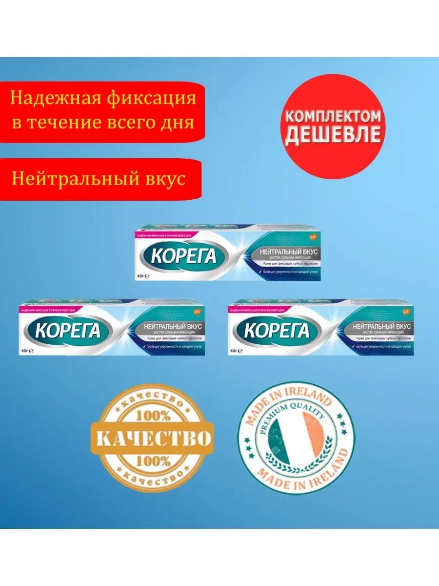 Надежная фиксация зубного протеза придаст вам уверенности и позволит заботиться о более важных вещах. Крем для фиксации зубных протезов Корега нейтральный вкус повышает качество жизни людей, использующих зубные протезы: Предотвращает попадание частичек пищи под протез* за счет всесторонней фиксации. Крем фиксирует зубной протез на целый день, позволяя вам забыть о дискомфорте в течение 12 часов**. Освежает дыхание за счет мятного вкуса Не содержит цинк.