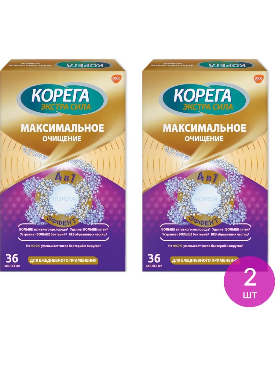 The set consists of 2 pieces. Price per set. Food debris accumulates in the mouth throughout the day, necessitating thorough oral hygiene. Dentures negatively impact the oral microflora and disrupt the natural self-cleaning process. This leads to inflammation, plaque buildup, and, ultimately, bad breath. Therefore, brushing dentures with a toothbrush alone is not enough; special daily denture care products are necessary. Korega Maximum Cleansing tablets have proven particularly effective. They contain active oxygen, clean dentures, eliminate odors without damaging the valuable material from which they are made, and maintain a fresh breath for a long time. Korega Maximum Cleansing tablets release twice as many cleaning ingredients as standard tablets, providing fast and superior cleaning, helping to extend the life of your dentures. While Korega Maximum Clean Denture Cleansing Tablets effectively remove bacteria, stains, and plaque, they don't scratch dentures with daily use, removing stains more gently than with regular toothpaste. Their powerful formula gently cleans dentures while effectively removing bacteria. Using them ensures your dentures stay clean and fresh. This product will help you look and feel better every day. Korega Denture Cleansing Tablets, without damaging your dentures, perfectly clean even the most hard-to-reach places! Denture tablets / denture tablets / denture cleaning tablets / denture cleaning tablets / denture cleaning tablets.
