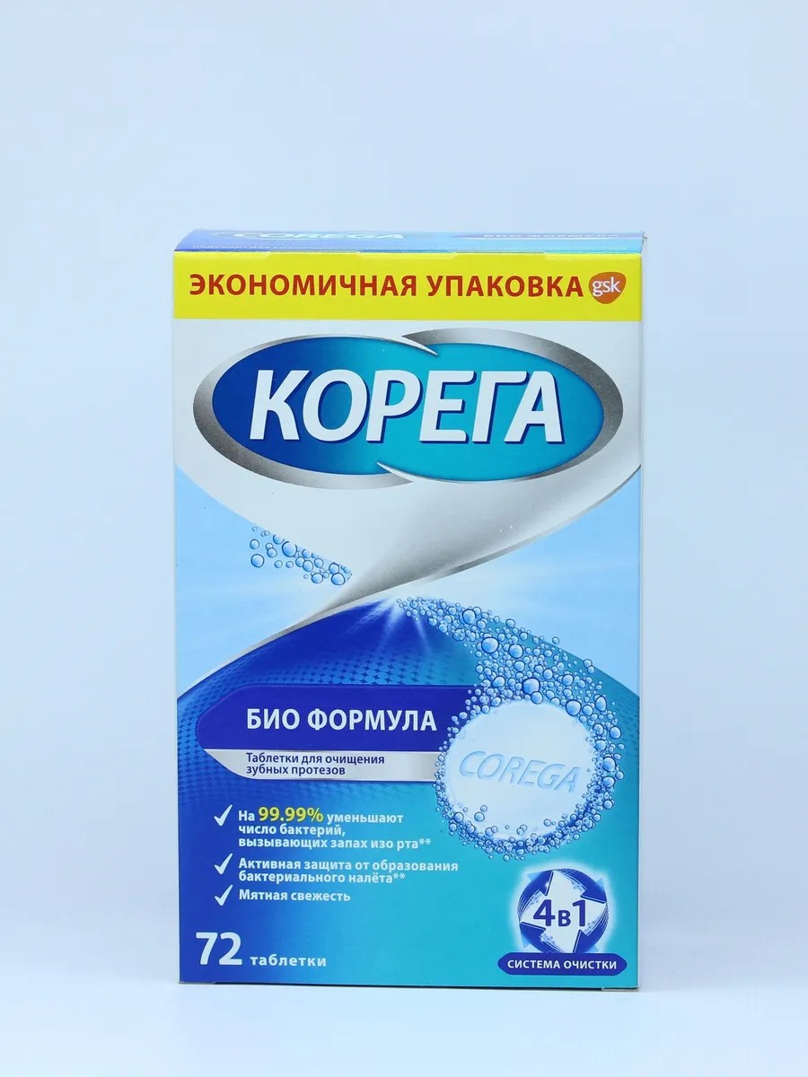 Корега таблетки для очищения зубных протезов Био формула мятная свежесть 72 таблетки