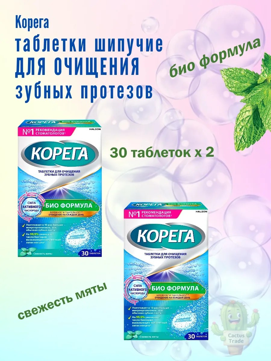 | Комплектация | Корега био формула таблетки для очищения зубных протезов 30 шт.; комплект из 2-х упаковок |