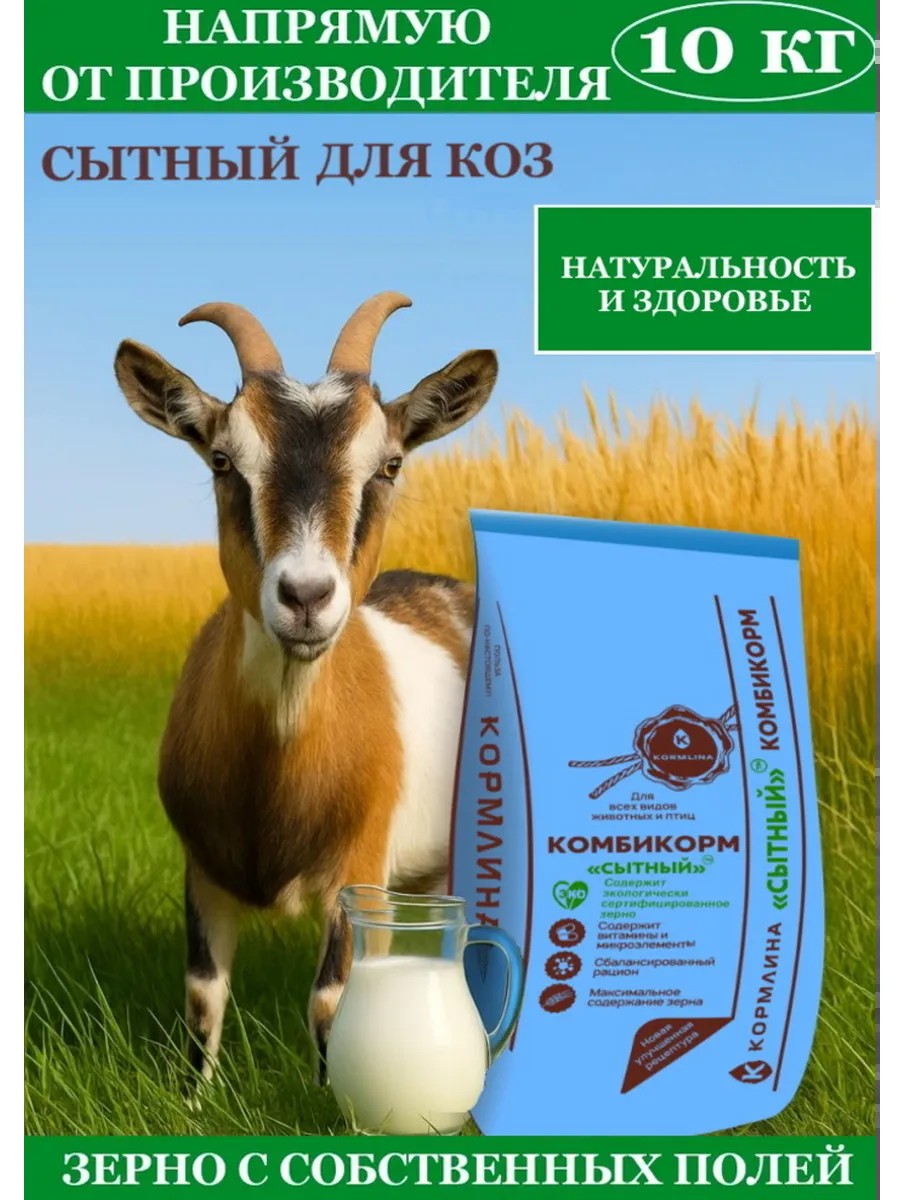 Кормлина Комбикорм Сытный для коз (10 кг)