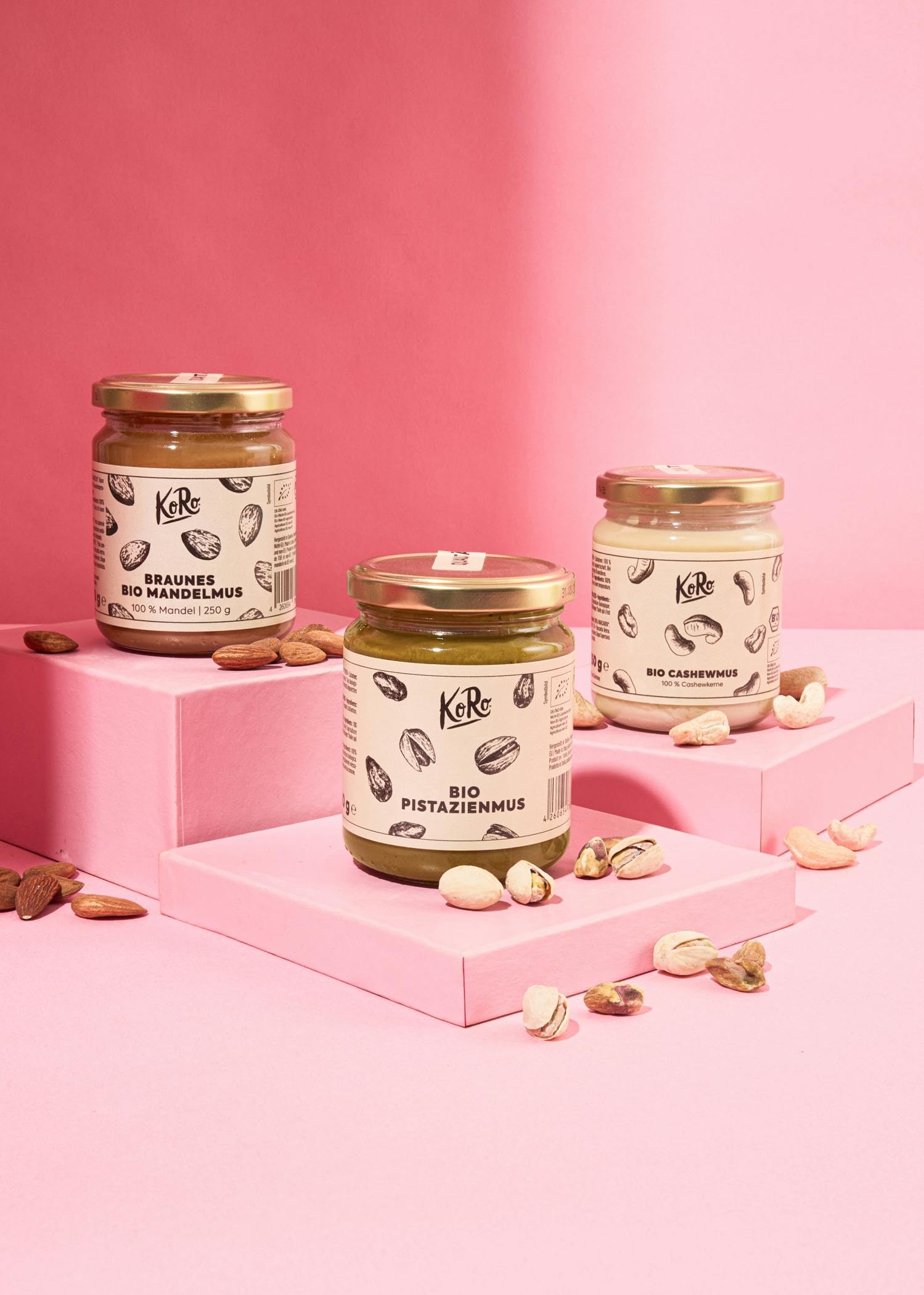 KoRo - Coffret d gustation pur es d'ol agineux bio Deluxe - 3 x 250 g - Pur e de noix de cajou de pistache et d'amande - Format d couverte pratique de 250 g - Vegan