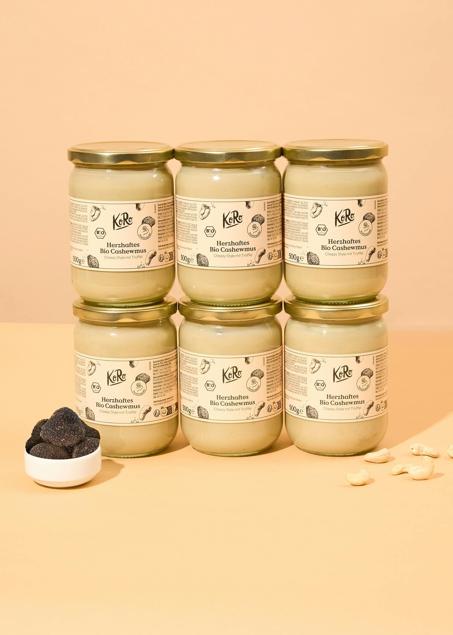 KoRo - Bio Cashewmus Cheezy Style mit Trüffel 6 x 500 g - Vegan - Feine Trüffelnote - Proteinquelle (21 g 100 g)
