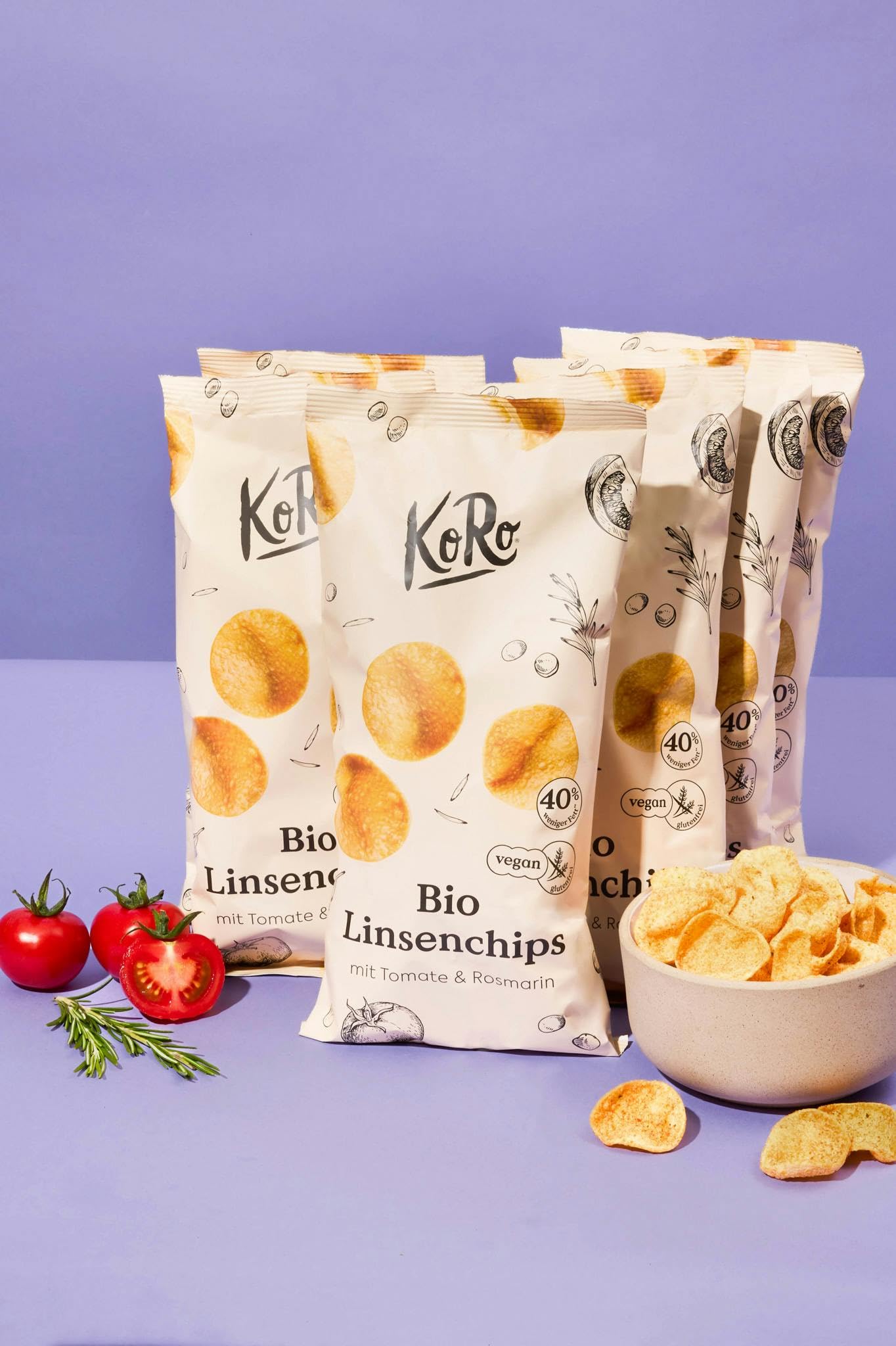Discover KoRo's delicious tomato and rosemary flavored lentil chips: an organic and vegan alternative to potato chips that's still tasty and crunchy. Perfect for appetizers, picnics, and movie nights, order these organic tomato and rosemary lentil chips! KoRo offers a wide selection of favorite foods in bulk. This not only saves on packaging materials and costs but also ensures long-term enjoyment of innovative snacks, superfoods, and cooking and baking ingredients. The Berlin-based company is constantly striving to expand its product range and source its ingredients as close to the source as possible.