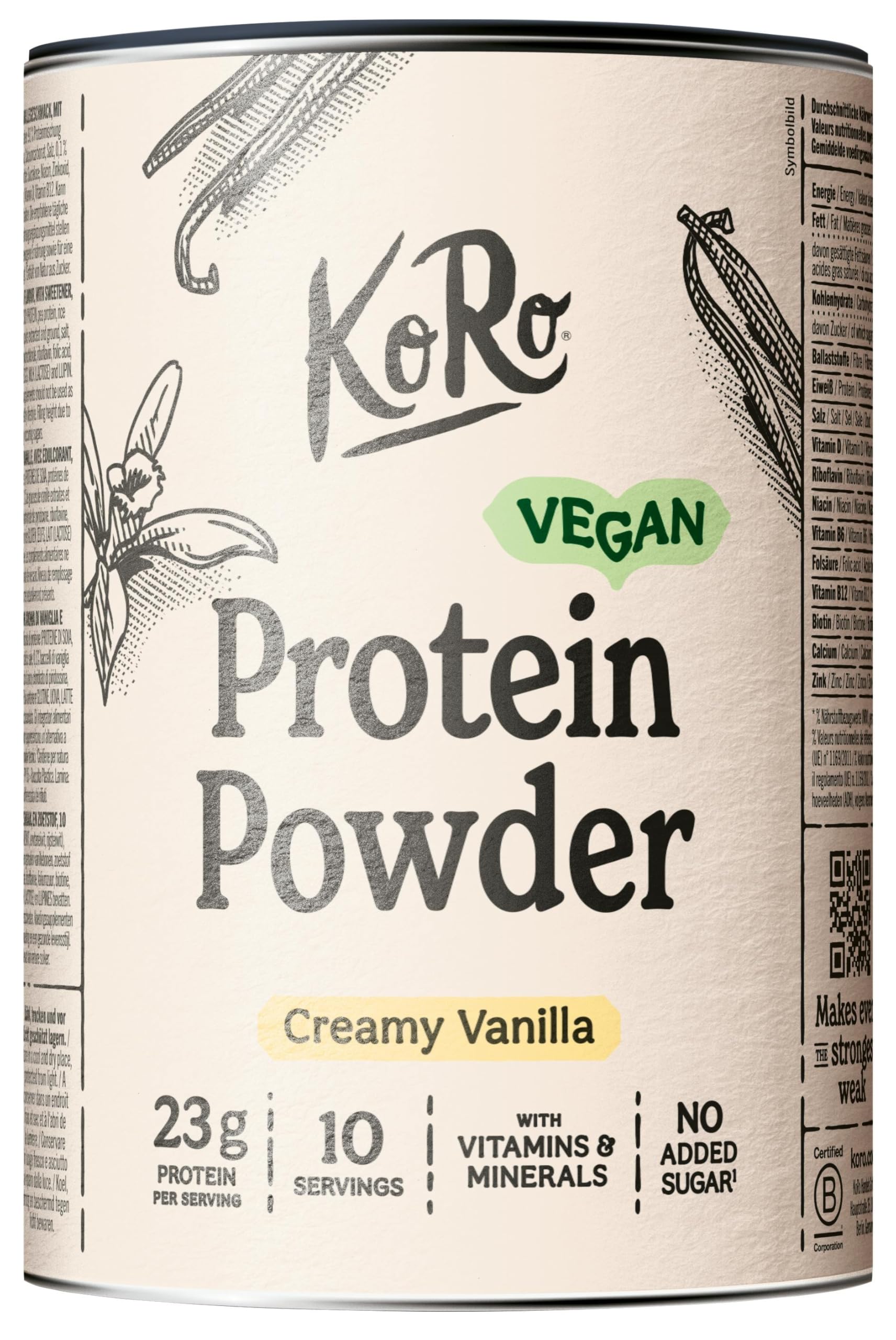 KoRo KoRo - Vegan Protein Powder Creamy Vanilla 300g - Made from rice pea and soy protein - Creamy-sweet taste - High protein content