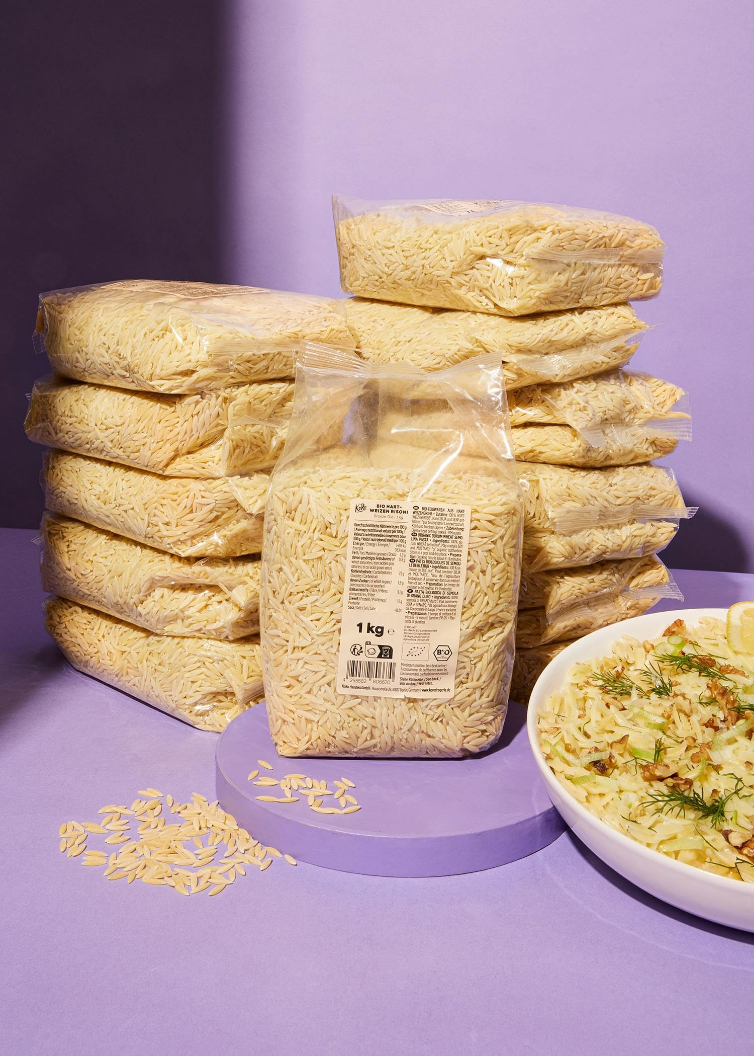 DESCRIPTION DU PRODUIT Orzo - Risoni au blé bio ✓ Semoule de blé dur à 100 ✓ Source de fibres et de protéines ✓ Polyvalent - achetez maintenant !