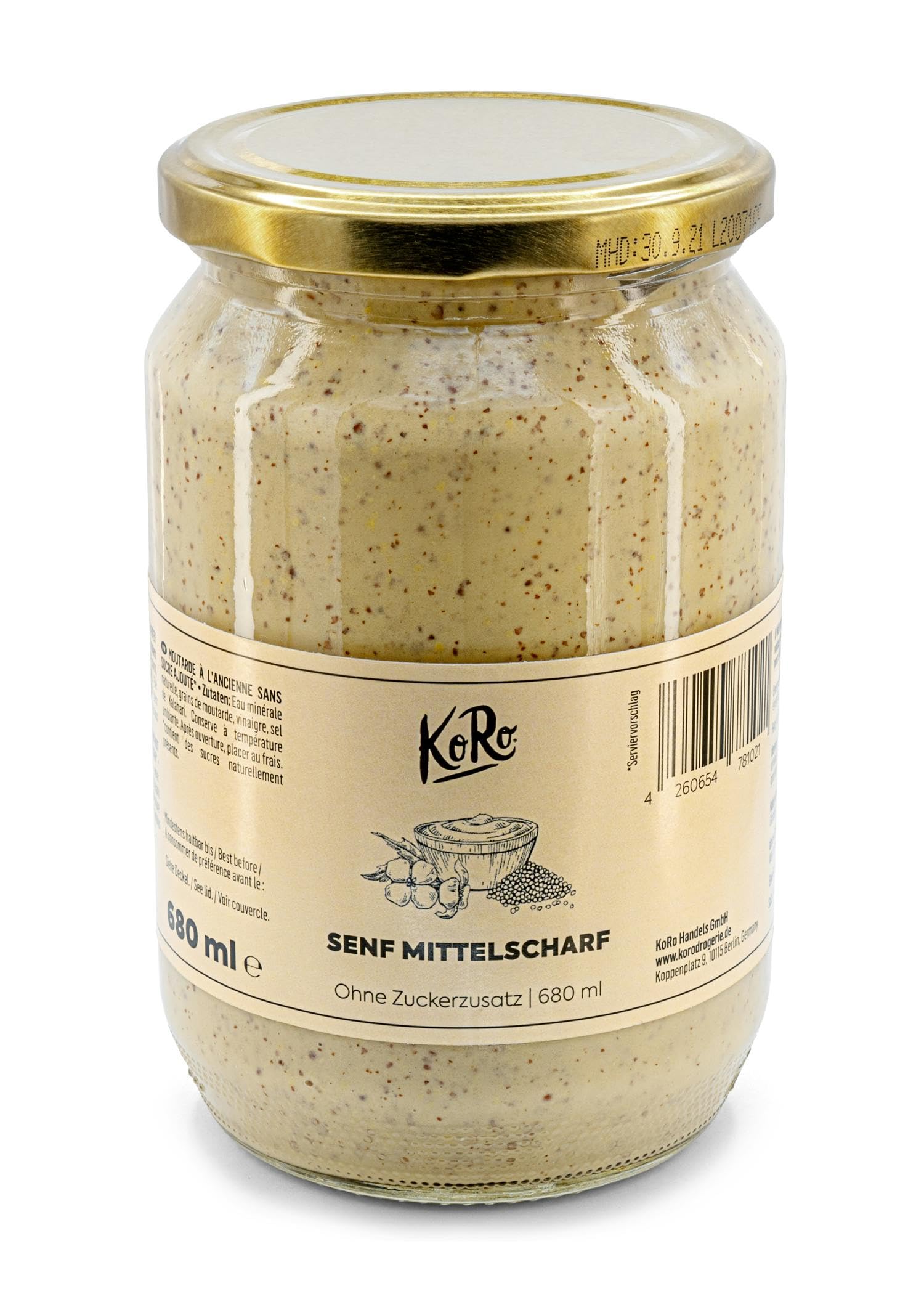 Imagine you've invited all your friends and family to a summer barbecue in your garden. Everyone is having fun and enjoying the food, but after a few hours, the little jar of mustard from the supermarket is empty. You bought it the other day. But don't worry, at KoRo, we've made sure that doesn't happen again. We now offer our medium-hot mustard in a 680 ml glass. INGREDIENTS Natural mineral water, MUSTARD powder, spirit vinegar, Kalahari salt - DIRECTIONS FOR USE Store at room temperature. After opening, keep refrigerated. 680 ml jar. Creamy texture with mustard seeds. No added sugar . Ideal for enhancing sauces and grilled dishes. Imaginez que vous avez invité tous vos amis et parents à un barbecue d'été dans votre jardin. Tout le monde s'amuse et apprécie la nourriture mais, au bout de quelques heures, le petit pot de moutarde du supermarché est vide. Vous l'aviez pourtant acheté l'autre jour. Mais ne vous inquiétez pas, chez KoRo, nous avons fait en sorte que cela ne se reproduise plus. Nous vous proposons désormais notre moutarde mi-forte dans un verre de 680 ml. INGRÉDIENTS Eau minérale naturelle, MOUTARDE en poudre, vinaigre d'alcool, sel du Kalahari - MODE D'EMPLOI À conserver à température ambiante. Après ouverture, à conserver au réfrigérateur. Pot de 680 ml. Texture onctueuse avec des graines de moutarde. Sans sucre ajouté . Idéale pour rehausser les sauces et les grillades.