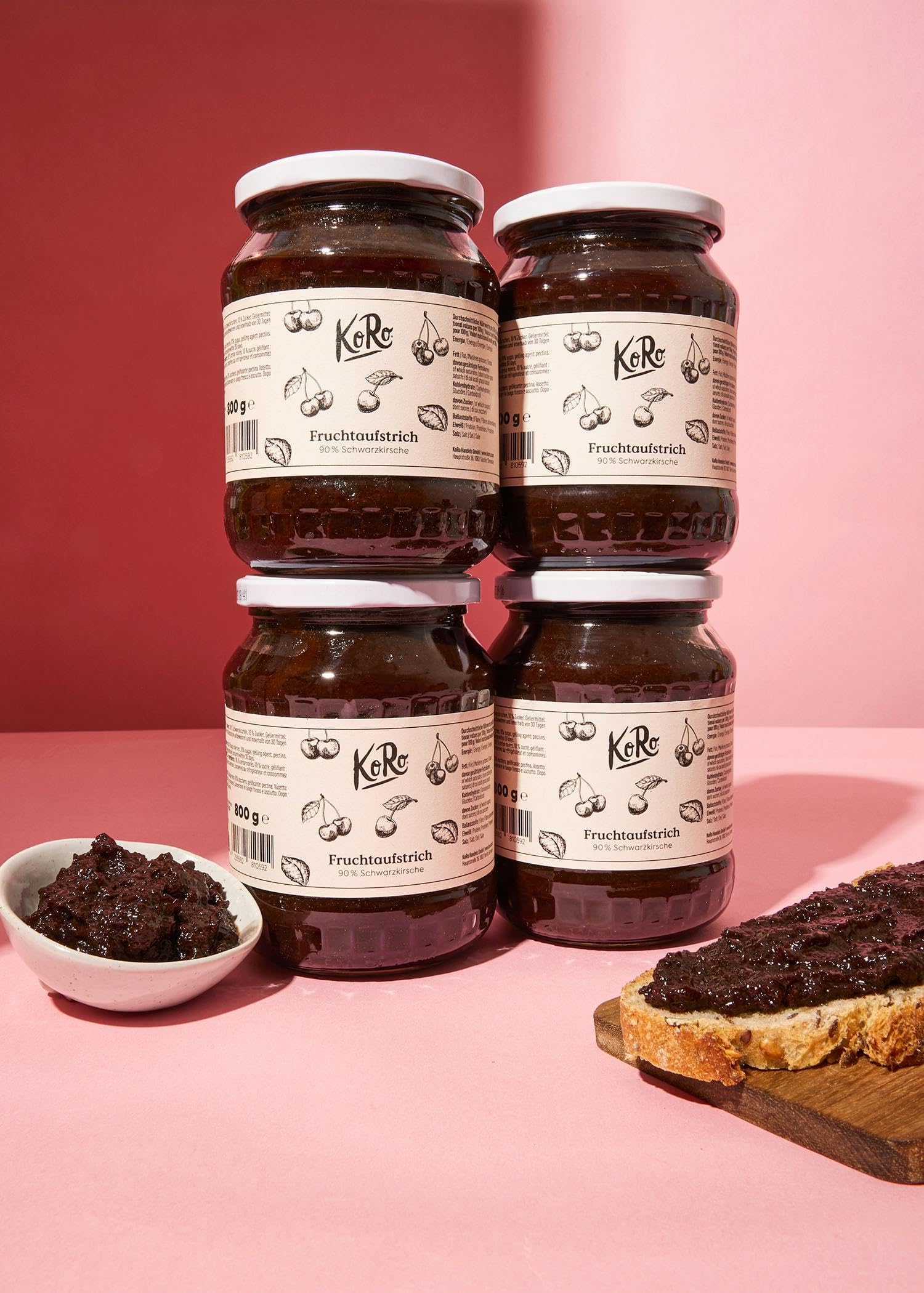 VARIETY: The fruity cherry spread brings variety to your breakfast table and is an alternative to strawberry and orange jam or plum jam. VEGAN: Our black cherry spread is purely plant-based and contains no ingredients of animal origin. FRUIT: Our cherry spread has a fruit content of 90 . This creates a fruity and intense taste. VERSATILE: The black cherry spread is suitable as a sweet spread, as a fruity topping for yogurt, muesli and porridge or as a juicy filling for pancakes and muffins. NATURAL: Our black cherry spread contains only three ingredients: 90 black cherries, sugar and pectin.VARIÉTÉ : La pâte à tartiner fruitée aux cerises apporte de la variété à votre table de petit-déjeuner et constitue une alternative à la confiture de fraises et d'oranges ou à la confiture de prunes. VÉGAN : Notre pâte à tartiner aux cerises noires est purement végétale et ne contient aucun ingrédient d'origine animale. FRUIT?: Notre pâte à tartiner aux cerises a une teneur en fruits de 90 . Cela crée un goût fruité et intense. POLYVALENT : La pâte à tartiner aux cerises noires convient comme pâte à tartiner sucrée, comme garniture fruitée pour le yaourt, le muesli et le porridge ou comme garniture juteuse pour les crêpes et les muffins. NATUREL : Notre pâte à tartiner aux cerises noires ne contient que trois ingrédients : 90 de cerises noires, du sucre et de la pectine.