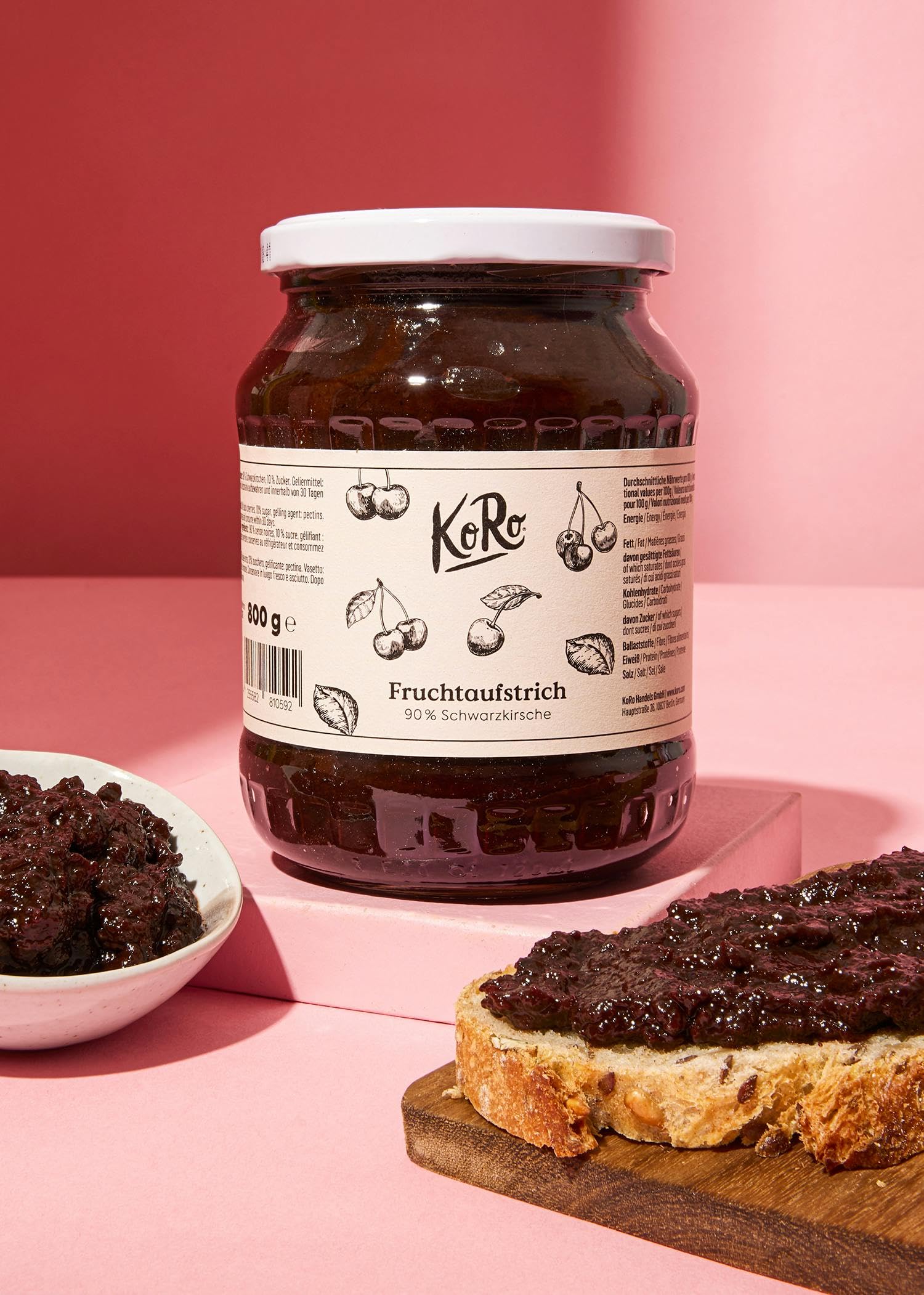 KoRo - Morello cherry spread 90% fruit 800 g - Made with only three ingredients - Intense black cherry flavor - Spreadable - Vegan