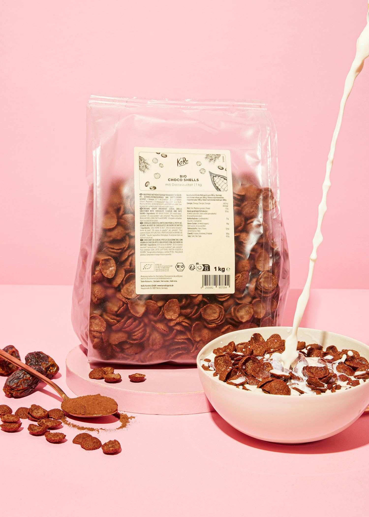 PRINCIPLES: At KoRo, we've made it our mission to provide you with the best quality at fair prices in convenient bulk packs. That's why we offer organic chocolate shells in a 1 kg economy pack!. SOURCE OF FIBER: With a fiber content of 5.4 g per 100 g, the chocolate flakes serve as a source of fiber. VALUE: Our cereal does not contain refined sugar. Instead, we use ground dates for sweetening, which naturally contain sugar. The cereal is also vegan. VERSATILE: You can either enjoy the Choco Shells with milk or a plant-based drink, or use them as a crunchy chocolate accompaniment to muesli, granola, or porridge. The chocolate flakes are also delicious for breakfast or as a snack with fresh or dried fruit or coconut flakes. ORGANIC: We use organically grown ingredients for our chocolate shells. Artificial colors, flavors, or preservatives are not included in our bags.PRINCIPES : Chez KoRo, nous nous sommes donné pour mission de vous fournir la meilleure qualité à des prix équitables dans des emballages en vrac pratiques. C'est pourquoi nous proposons des coques de chocolat bio dans un emballage économique de 1 kg !. SOURCE DE FIBRES : Avec une teneur en fibres de 5,4 g pour 100 g, les flocons de chocolat servent de source de fibres. VALEUR : Nos céréales ne contiennent pas de sucre raffiné. Au lieu de cela, nous utilisons des dattes moulues pour sucrer, qui contiennent naturellement du sucre. Les céréales sont également vegan. POLYVALENT : Vous pouvez soit déguster les Choco Shells avec du lait ou une boisson végétale, soit les utiliser comme accompagnement au chocolat croustillant pour le muesli, le granola ou le porridge. Les flocons de chocolat sont également délicieux au petit-déjeuner ou au goûter avec des fruits frais ou secs ou des flocons de noix de coco. BIO : Nous utilisons des ingrédients issus de l'agriculture biologique pour nos coques chocolatées. Les colorants et arômes artificiels ou les conservateurs ne sont pas inclus dans nos sacs.