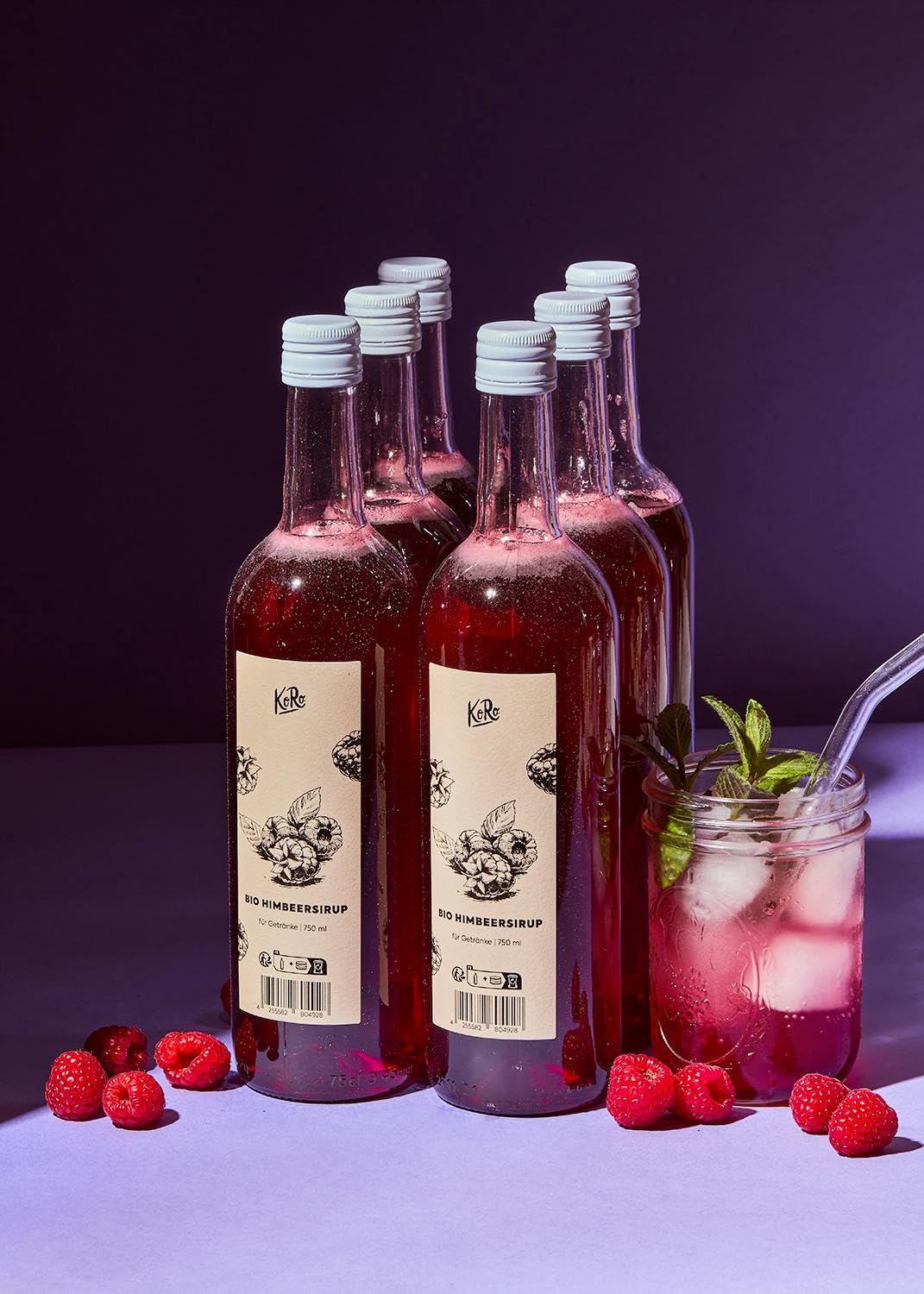PRINCIPLES: KoRo stands for the best quality and the right price-performance ratio. That's why we offer many of our products in practical value packs!. FOR YOU: Our syrup has a fruity raspberry flavor and a slight sweetness. We recommend mixing our organic raspberry syrup in a ratio of 1:7 - i.e. 1 part syrup to 7 parts water. If you use water from the sparkling water maker, only add the syrup after it has bubbled!. VALUE: Our raspberry syrup uses an extract obtained by gentle cold pressing of organic raspberries. VERSATILE: With our raspberry-flavored drinking syrup, you can create delicious raspberry spritzers in no time and give desserts, cocktails, and cakes a fine raspberry flavor. You can also mix it neat into yogurt or use it in baking. ORGANIC: KoRo raspberry syrup is made from raspberry juice that comes from raspberries from controlled organic farming.PRINCIPES : KoRo est synonyme de la meilleure qualité et du juste rapport qualité-prix. C'est pourquoi nous proposons bon nombre de nos produits dans des packs économiques pratiques !. POUR VOUS : Notre sirop a un goût fruité de framboise et une légère douceur. Nous vous recommandons de mélanger notre sirop de framboise biologique dans un rapport de 1:7 - c'est-à-dire 1 partie de sirop pour 7 parties d'eau. Si vous utilisez de l'eau de l'appareil à eau pétillante, n'ajoutez le sirop qu'après avoir fait des bulles !. VALEUR : Pour la production de notre sirop de framboise, on utilise un extrait obtenu par pression douce à froid de framboises biologiques. POLYVALENT : Avec notre sirop de boisson aromatisé à la framboise, vous pouvez créer de délicieux spritzers à la framboise en un rien de temps et donner aux desserts, cocktails et gâteaux une fine saveur de framboise. Vous pouvez aussi le mélanger pur dans du yaourt ou l'utiliser en pâtisserie. BIO : Le sirop de framboise KoRo est fabriqué à partir de jus de framboise qui provient de framboises issues de l'agriculture biologique contrôlée.