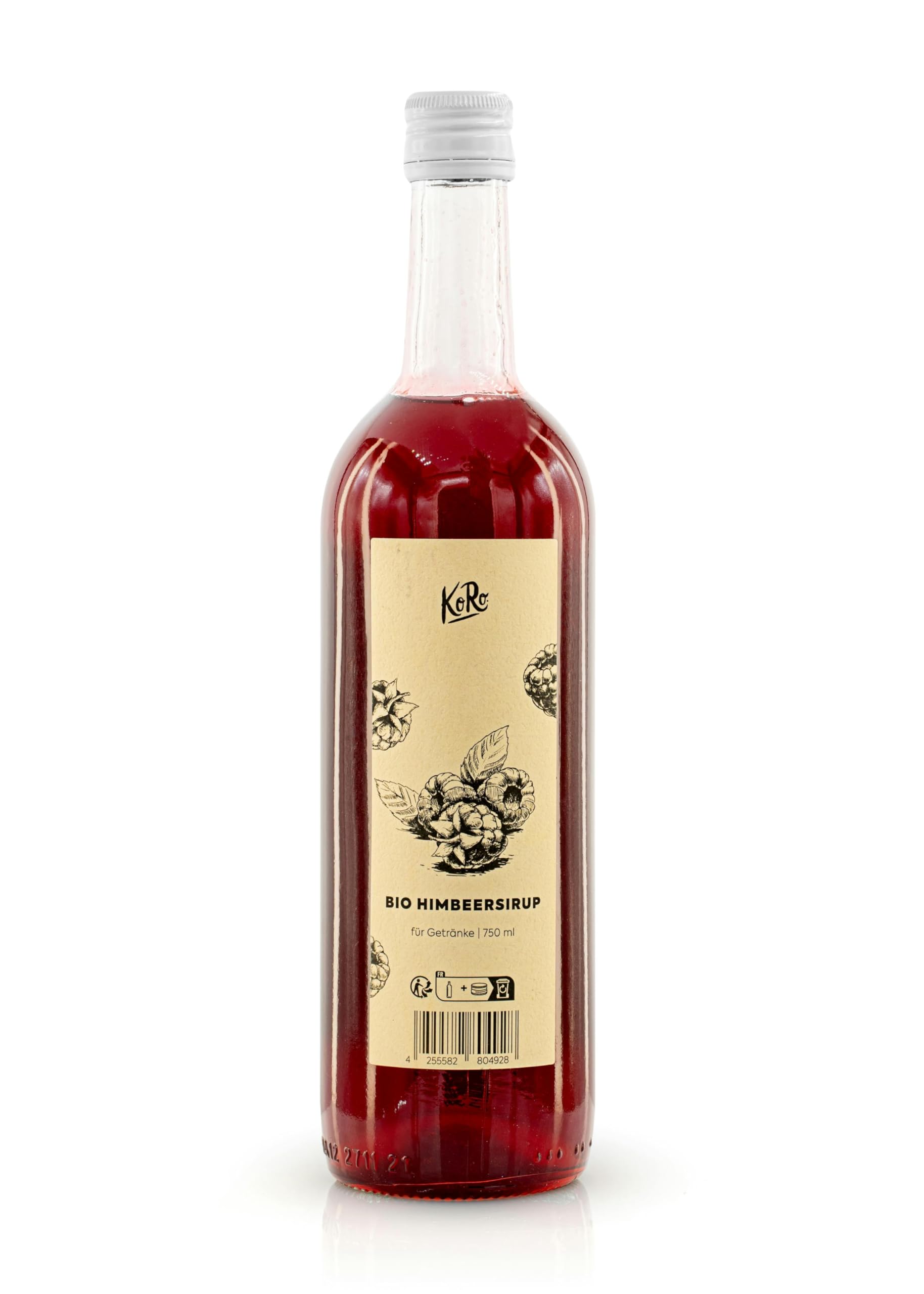 PRINCIPLES: KoRo stands for the best quality and the right price-performance ratio. That's why we offer many of our products in practical value packs!. FOR YOU: Our syrup has a fruity raspberry flavor and a slight sweetness. We recommend mixing our organic raspberry syrup in a ratio of 1:7 - i.e. 1 part syrup to 7 parts water. If you use water from the sparkling water maker, only add the syrup after it has bubbled!. VALUE: Our raspberry syrup uses an extract obtained by gentle cold pressing of organic raspberries. VERSATILE: With our raspberry-flavored drinking syrup, you can create delicious raspberry spritzers in no time and give desserts, cocktails, and cakes a fine raspberry flavor. You can also mix it neat into yogurt or use it in baking. ORGANIC: KoRo raspberry syrup is made from raspberry juice that comes from raspberries from controlled organic farming.PRINCIPES : KoRo est synonyme de la meilleure qualité et du juste rapport qualité-prix. C'est pourquoi nous proposons bon nombre de nos produits dans des packs économiques pratiques !. POUR VOUS : Notre sirop a un goût fruité de framboise et une légère douceur. Nous vous recommandons de mélanger notre sirop de framboise biologique dans un rapport de 1:7 - c'est-à-dire 1 partie de sirop pour 7 parties d'eau. Si vous utilisez de l'eau de l'appareil à eau pétillante, n'ajoutez le sirop qu'après avoir fait des bulles !. VALEUR : Pour la production de notre sirop de framboise, on utilise un extrait obtenu par pression douce à froid de framboises biologiques. POLYVALENT : Avec notre sirop de boisson aromatisé à la framboise, vous pouvez créer de délicieux spritzers à la framboise en un rien de temps et donner aux desserts, cocktails et gâteaux une fine saveur de framboise. Vous pouvez aussi le mélanger pur dans du yaourt ou l'utiliser en pâtisserie. BIO : Le sirop de framboise KoRo est fabriqué à partir de jus de framboise qui provient de framboises issues de l'agriculture biologique contrôlée.