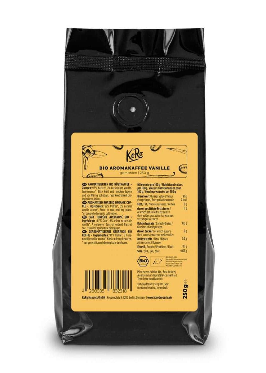 KoRo - Organic Vanilla Coffee 250g - High quality roasted coffee ground from 100% Arabica beans with a fine vanilla aroma without artificial flavors.