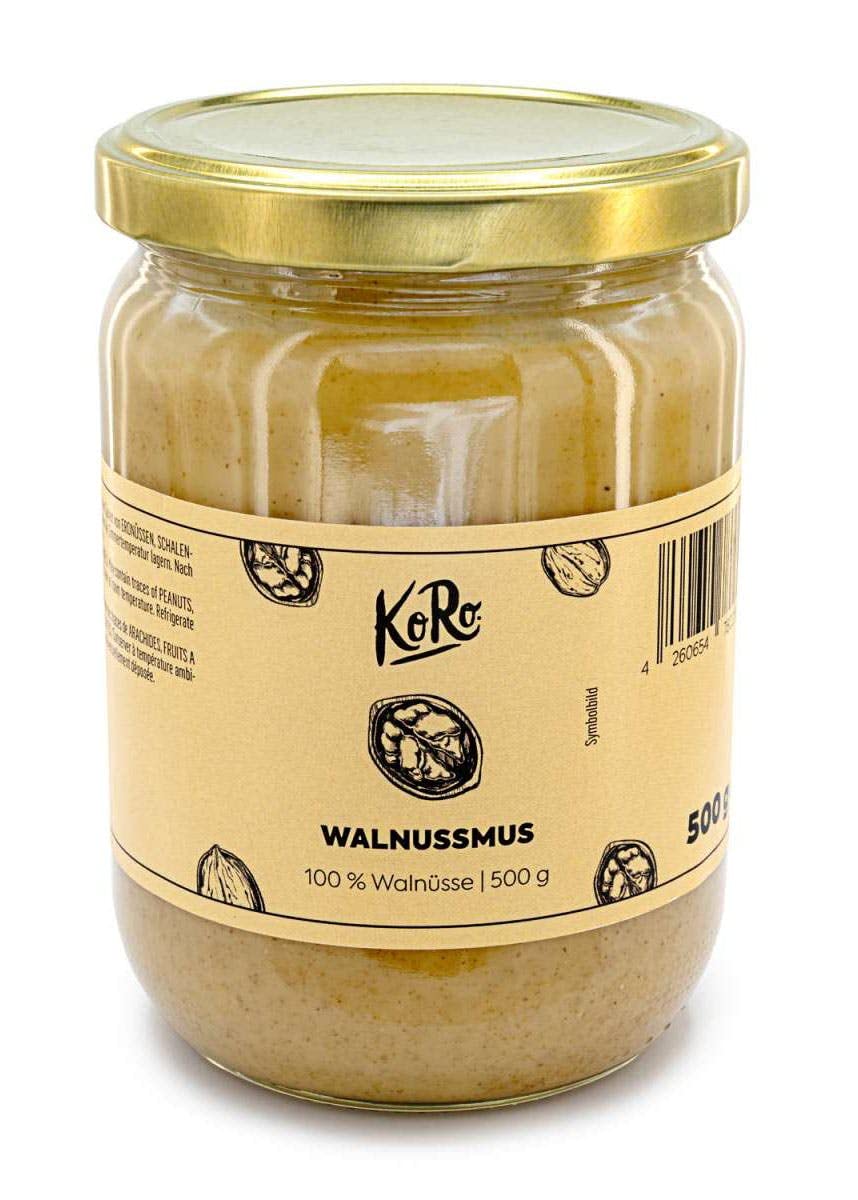 PRINCIPLES: At KoRo, our mission is to provide you with the best quality at fair prices in convenient bulk sizes. That's why we offer your favorite products in economical packs! FOR YOU: Our nut butter is naturally gluten-free and lactose-free. BENEFITS: Nuts are rich in unsaturated fatty acids and omega-3. MULTI-PURPOSE: Our nut butter can be used on bread, in porridge, or for cooking. NATURAL: Our nut butter contains no added sugar or artificial flavor enhancers.PRINCIPES : Chez KoRo, nous nous sommes donné pour mission de vous fournir la meilleure qualité à des prix équitables en grands formats pratiques. C'est pourquoi nous proposons vos produits préférés en packs économiques !. POUR VOUS : La purée de noix est naturellement sans gluten et sans lactose. QUALITÉS : Les noix sont riches en acides gras insaturés et en oméga-3. MULTI USAGES : Notre purée peut être utilisée sur du pain, dans du porridge ou pour cuisiner. NATURELLE : Notre purée de noix est sans sucre ajouté et sans exhausteur de goût artificiel.KoRo - Purée de noix 500 g Noix 500 g (Lot de 1)