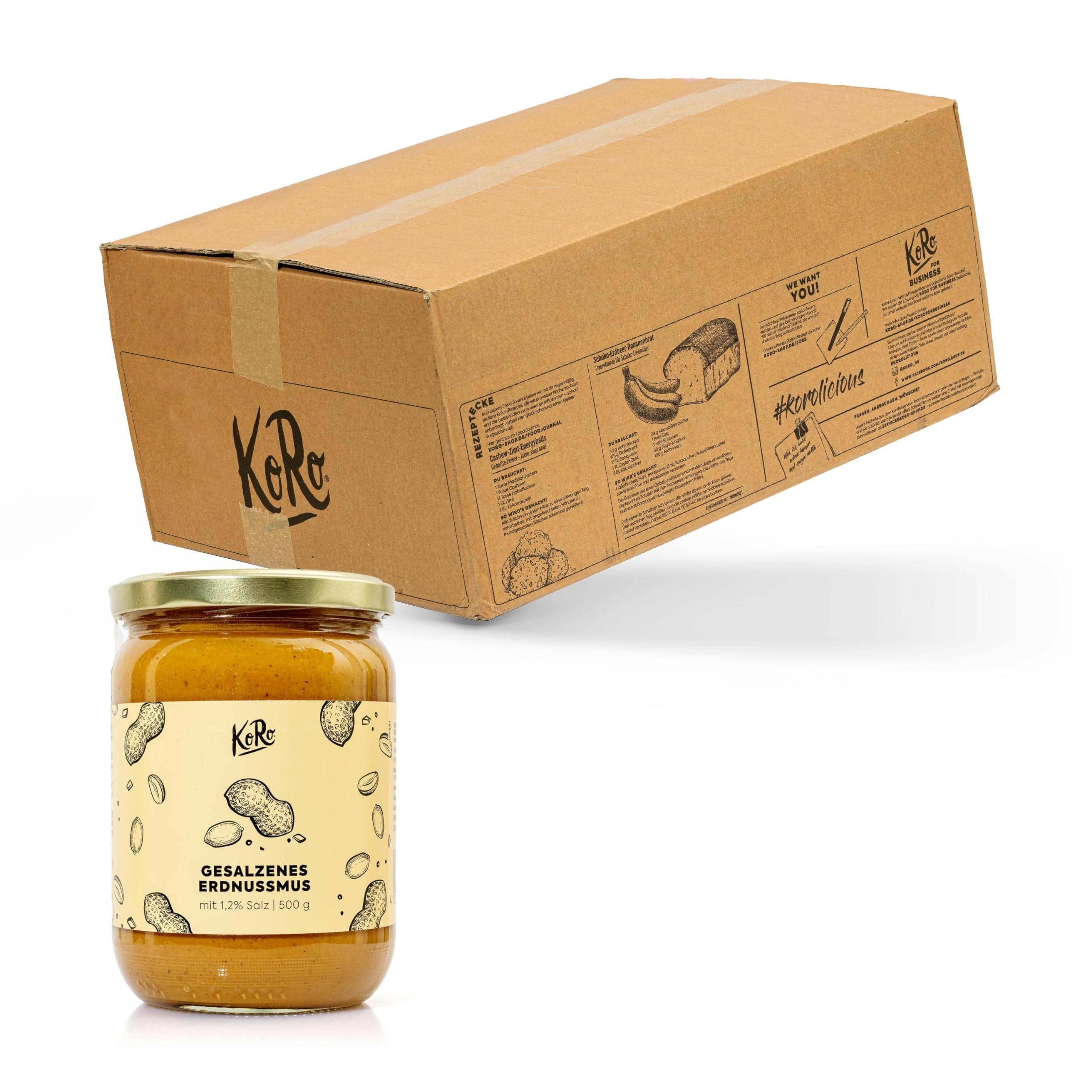 PRINCIPLES: At KoRo, we've made it our mission to provide you with the best quality at fair prices in convenient bulk packaging. That's why we have your favorites in value packs!. FOR YOU: Salted peanut butter is naturally 100 vegan. Whether you use it pure as a spread and topping or use it for cooking and baking, it's up to you. If you're a fan of sweet and savory combinations, you definitely shouldn't miss out on salted peanut butter!. VALUABLE: With 27g of protein per 100g, vegan peanut butter is a source of protein. In addition, the peanut cream has a high fiber content (9.8g 100g). VERSATILE: You can experiment freely with our salted peanut butter. Whether as a spread, as a topping for muesli and porridge, or as an addition to a smoothie or salad dressing: nut butter tastes best if you don't pour it straight from the glass, in sweet and savory baking creations or as an accent in savory dishes. NATURAL: Our salted peanut butter consists of just two ingredients: roasted peanuts and a pinch of salt. What's more, it contains no refined sugar or preservatives. Peanuts naturally contain sugar.PRINCIPES : Chez KoRo, nous nous sommes donné pour mission de vous fournir la meilleure qualité à des prix équitables dans des emballages en vrac pratiques. C'est pourquoi nous avons vos favoris dans des packs économiques !. POUR VOUS : Le beurre de cacahuète salé est naturellement 100 vegan. Que vous l'utilisiez pur comme tartinade et garniture ou que vous l'utilisiez pour la cuisine et la pâtisserie, c'est à vous de décider.Si vous êtes un fan des combinaisons sucrées et salées, vous ne devriez certainement pas manquer le beurre de cacahuète salé !. PRÉCIEUX : Avec 27 g de protéines pour 100 g, le beurre de cacahuète végétalien est une source de protéines. De plus, la crème de cacahuète a une teneur élevée en fibres (9,8g 100g). POLYVALENT : Vous pouvez expérimenter librement avec notre beurre de cacahuète salé. Que ce soit en tartinade, en garniture pour le muesli et le porridge, ou en complément d'un smoothie ou d'une vinaigrette : le beurre de noix a meilleur goût si vous ne le versez pas directement du verre, dans des créations de pâtisserie sucrées-salées ou comme un accent dans les plats salés. NATUREL : Notre beurre de cacahuètes salé se compose de seulement deux ingrédients : des cacahuètes grillées et une pincée de sel. De plus, il ne contient ni sucre raffiné ni conservateur. Les cacahuètes contiennent naturellement du sucre.