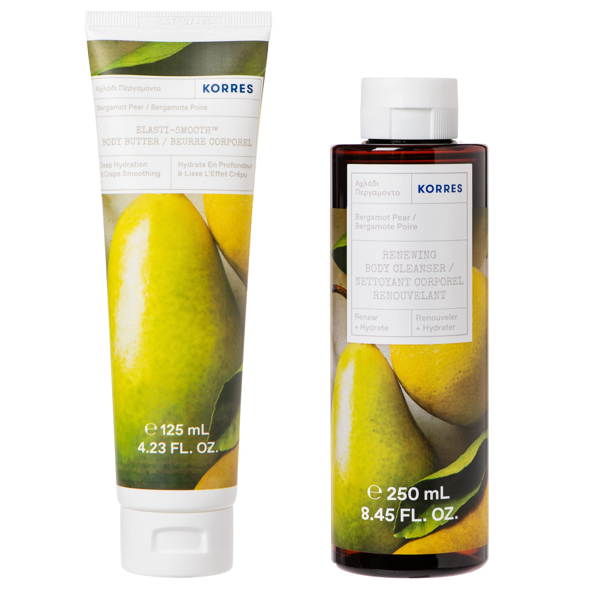 KORRES Bergamot Pear Body Bundle | Elasti-Smooth Bergamot Pear Body Butter 125 ml & Bergamot Pear Renewing Body Cleanser 250 ml | 2 Piece