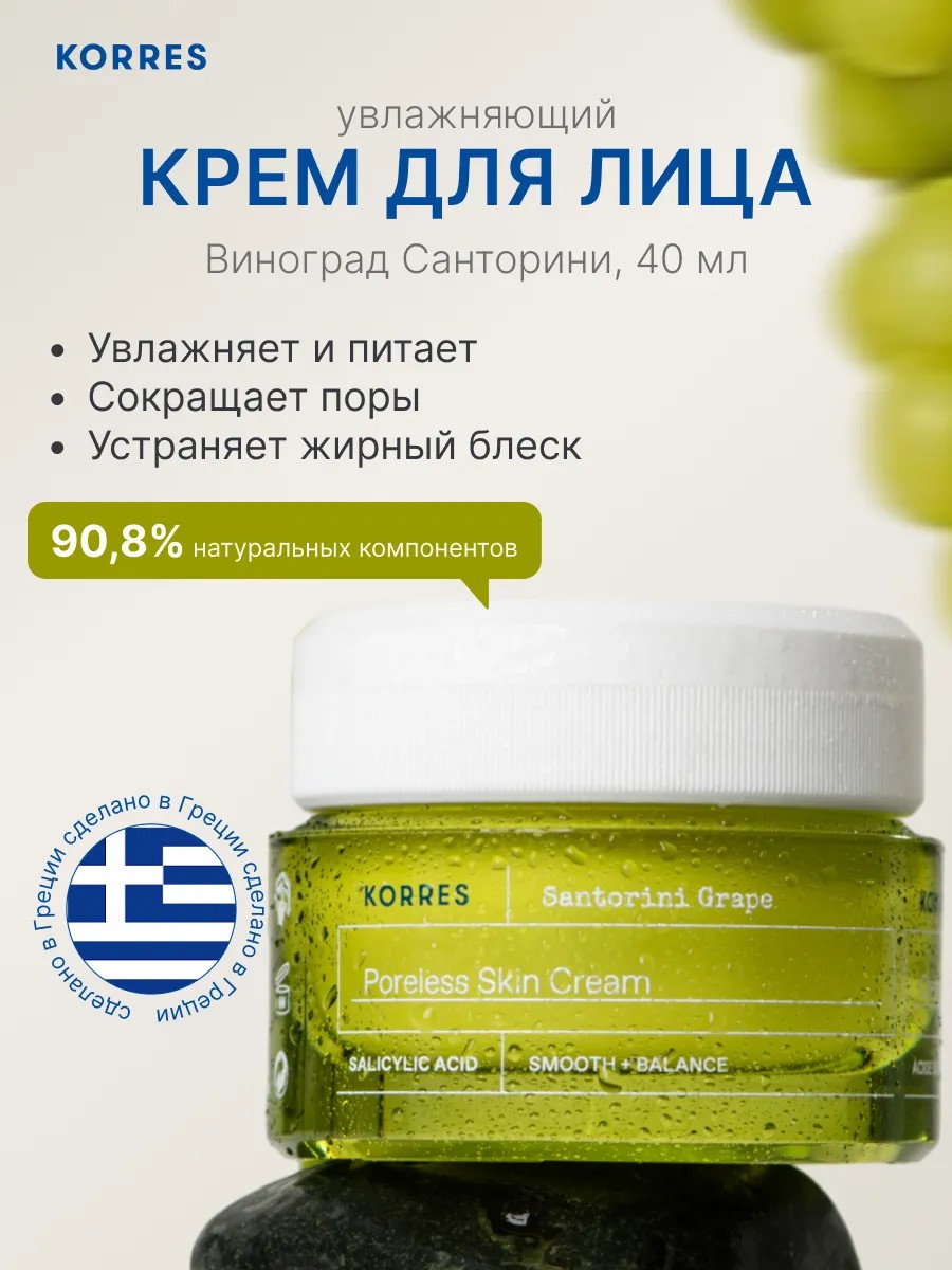 Inspired by the nature of Greece, the mattifying cream "Santorini Grapes" from Korres will become your reliable ally in your daily care, ensuring freshness and radiance of your skin.
