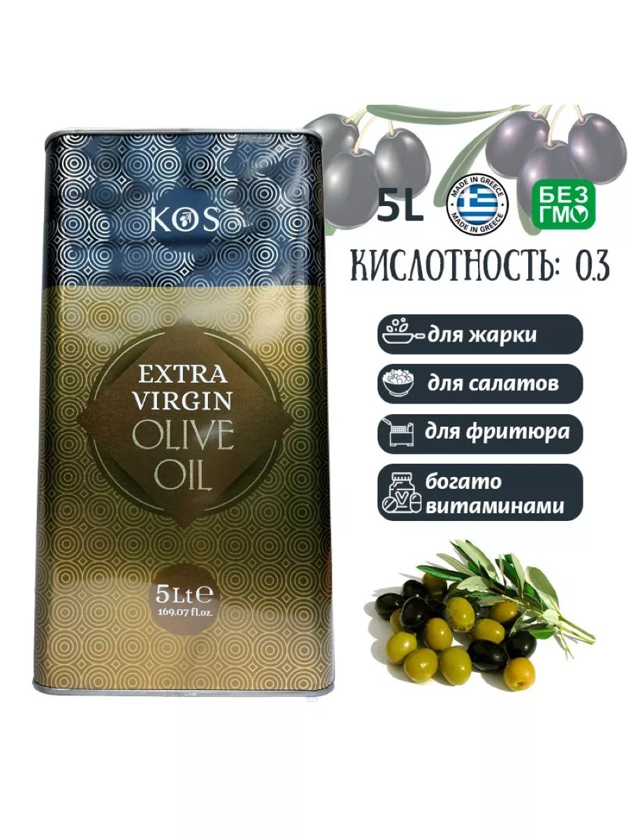 KOS Оливковое масло Extra Virgin нерафинированное, Греция, 5 л