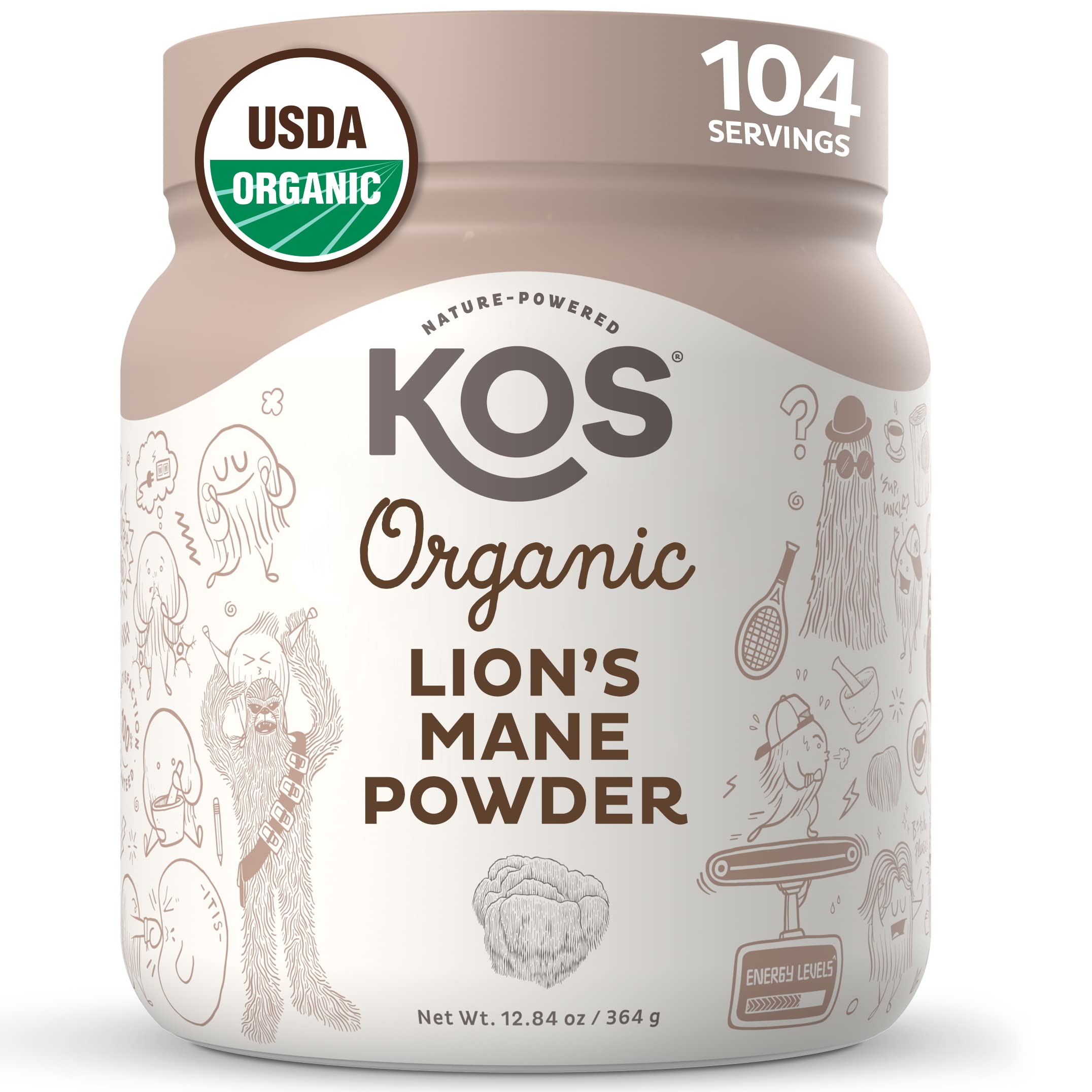 KOS Organic Lion's Mane Powder - Natural Nootropic Superfood - Vegan Functional Mushroom, Plant Based, USDA Certified, Non-GMO, Soy Gluten-Free - 104 Servings