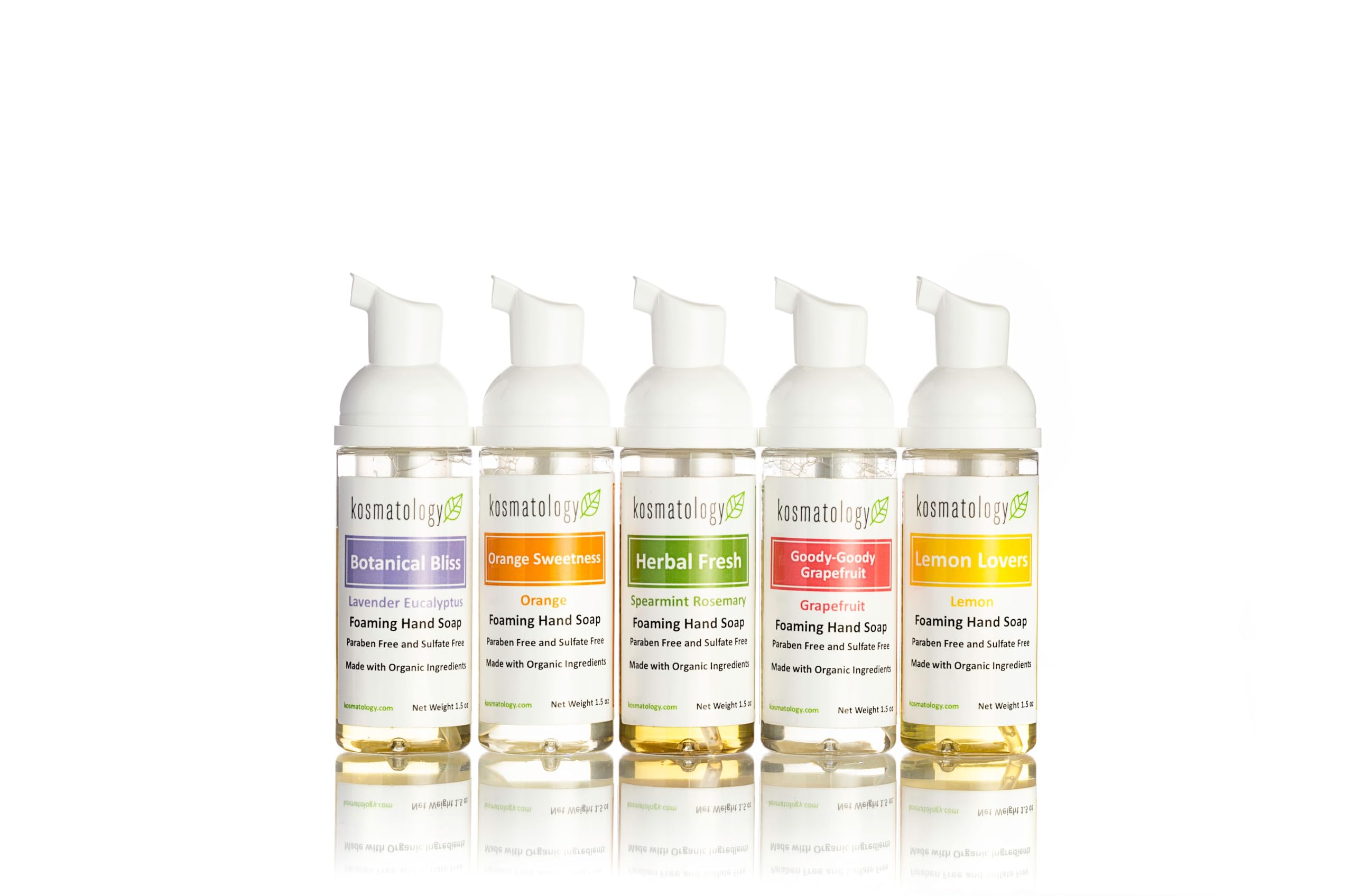 ? 5 REFRESHING SCENTS – Includes: Lemon Lovers (bright zesty), Orange Sweetness (sweet citrus), Herbal Fresh (grounding herbal), Goody-Goody Grapefruit (juicy tangy), Botanical Bliss (floral uplifting). CRUELTY-FREE – Kosmatology products are vegan, cruelty-free, and packaged with care for a greener planet. ? REFILLABLE ECO-CONSCIOUS – Designed with reusable bottles to cut down on plastic waste—refill with Kosmatology's larger soap refills for a sustainable handwashing routine. GENTLE ON SKIN – Rich foaming lather washes away dirt and germs without drying, making it safe for kids, adults, and those with sensitive skin. ? TRAVEL-SIZED TSA-FRIENDLY – Each 1.5 oz foaming bottle is perfect for on-the-go use. Slip one in your bag, backpack, or car for clean hands anywhere. CLEAN NON-TOXIC FORMULA – Made with organic oils and pure essential oils, Kosmatology foaming hand soaps are free from parabens, sulfates, phthalates, synthetic fragrances, and triclosan.