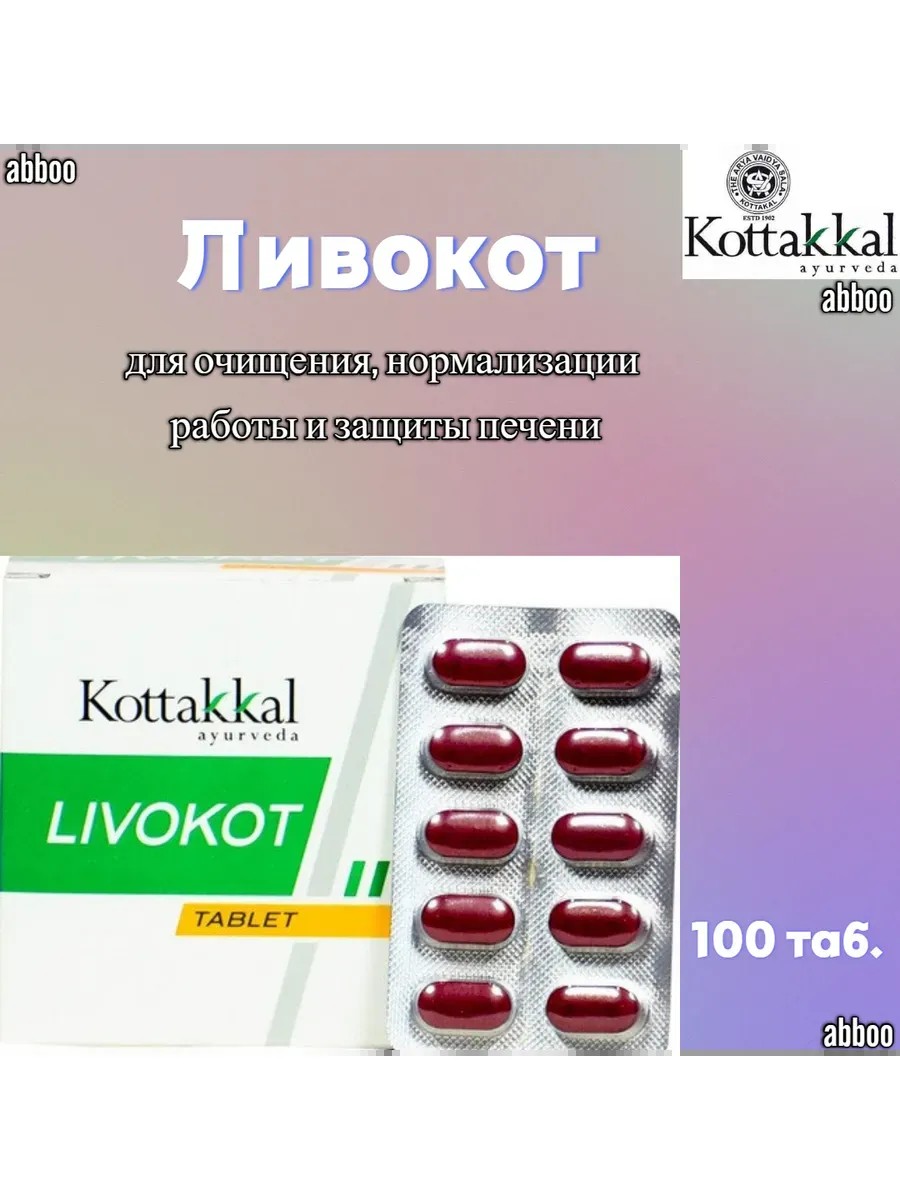 Livokot (Ливокот) – производства «Коттаккал Аюрведа», который предназначен для очищения, нормализации работы и защиты печени. На этот орган оказывается большая нагрузка, и со временем она перестает эффективно функционировать. В результате человек начинает чувствовать себя вялым и усталым, апатичным и раздраженным. Из-за проблем с печеньюabboo могут возникнуть аллергические высыпания на коже, снижение иммунитета. «Ливокот» помогает бороться с недугами, восстанавливаяabboo работу органа и оздоравливая его.