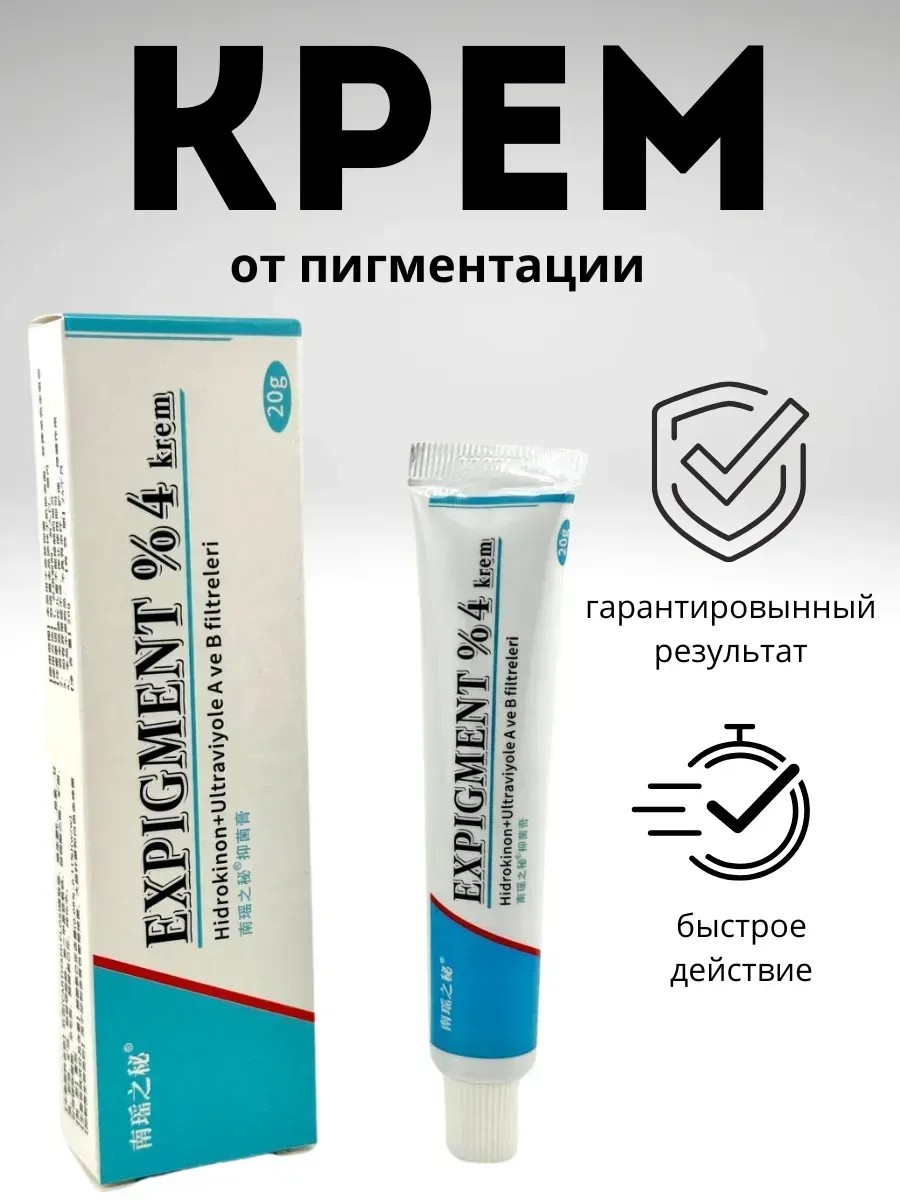 Expigment 4% is a Chinese whitening cream created using advanced technologies and active ingredients. The main component, hydroquinone, effectively combats hyperpigmentation, dark spots, and freckles, helping to lighten post-acne marks, scars, and marks.
