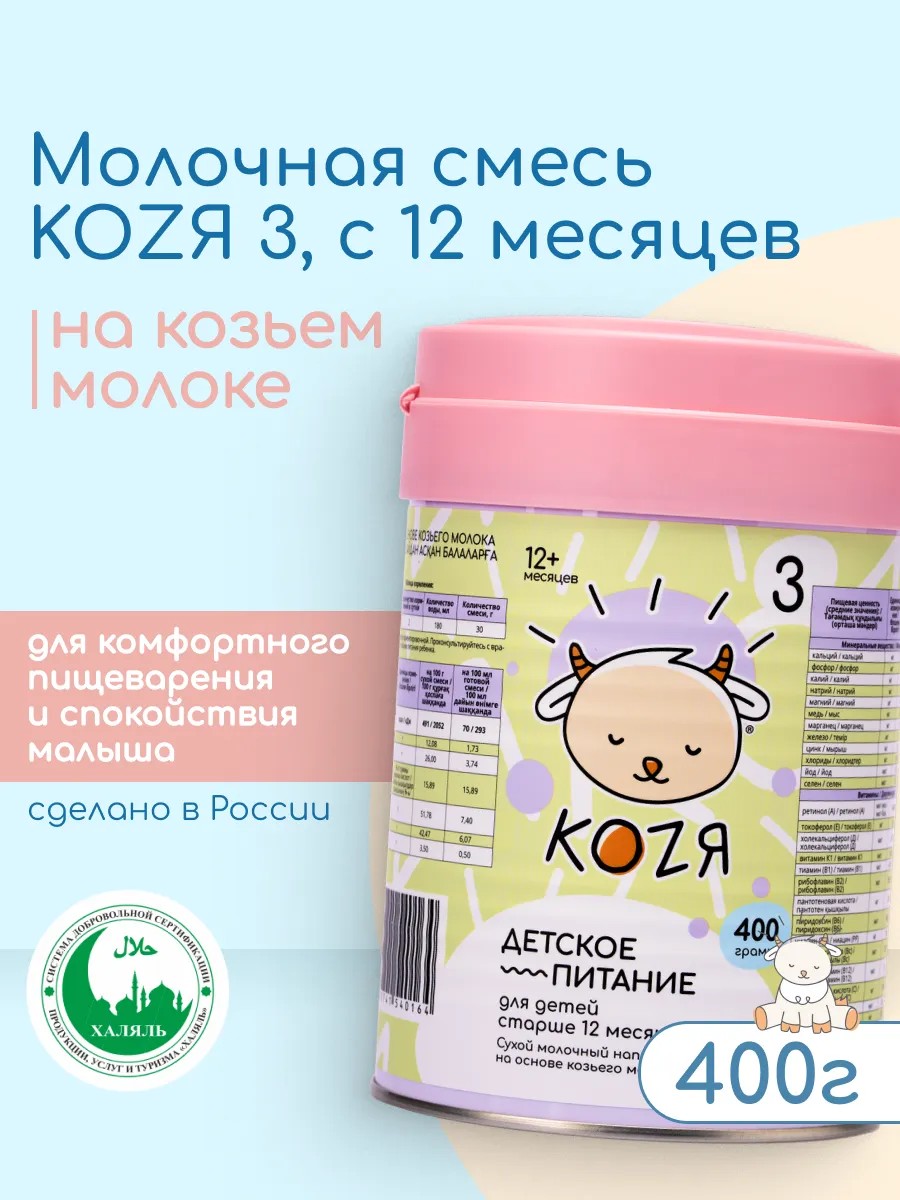 Kozya-3 adapted dry milk formula with goat's milk for children 12 months and older.