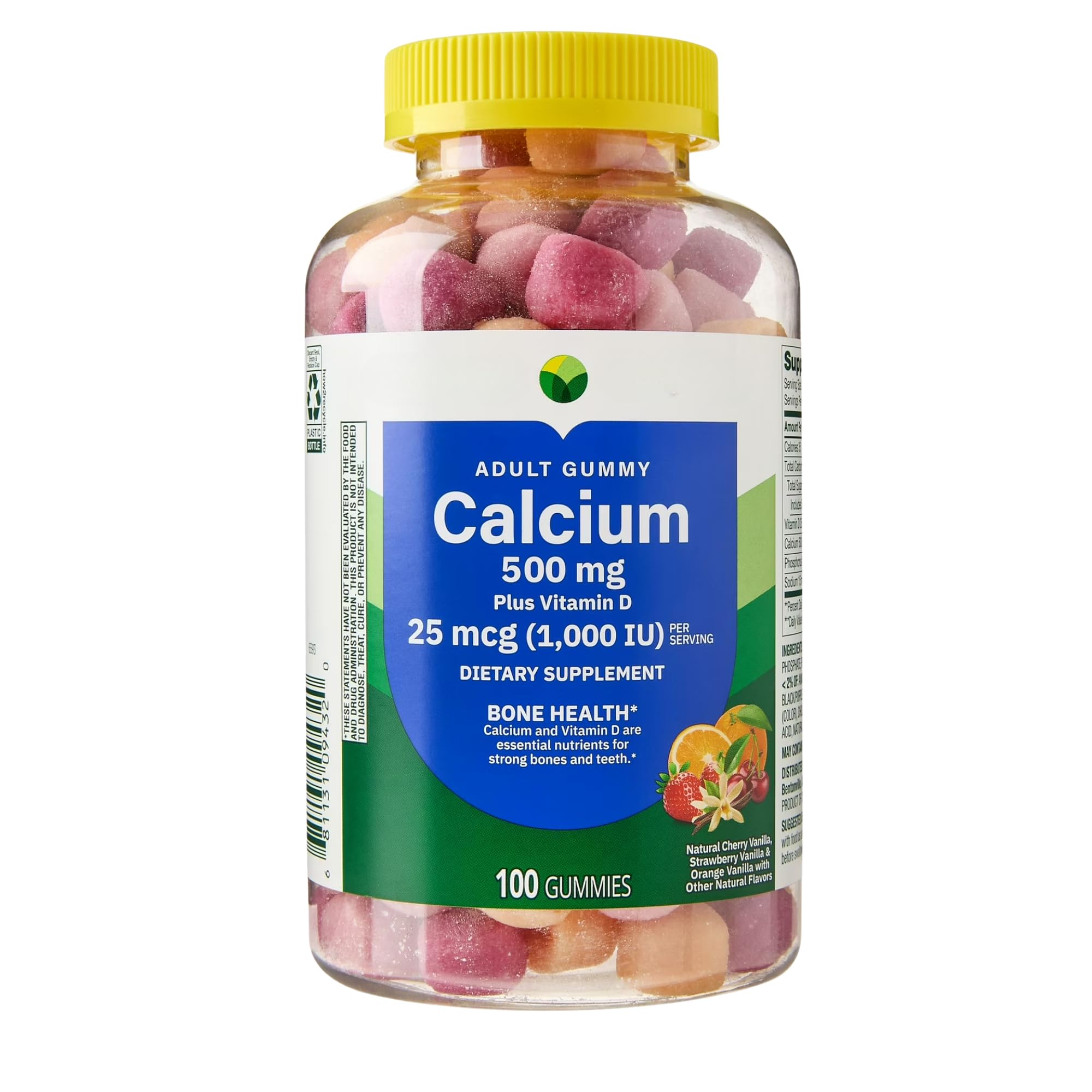 5 ? 100 Gummies per Bottle — Convenient value size bottle provides a long-lasting supply of calcium and vitamin D support for your daily wellness routine. . 4 ? Easy-to-Take Gummy Format — Designed for adults who prefer a chewable supplement over traditional tablets, without compromising on potency or quality. . 3 ? Delicious Adult Gummies — Enjoy a mix of natural cherry, strawberry, and orange vanilla flavors, making it easy and enjoyable to get daily calcium and vitamin D. . 2 ? With Vitamin D for Better Absorption — Vitamin D supports calcium absorption and helps maintain proper bone mineral density for overall bone strength. . 1 ? Bone Health Support — Formulated with Calcium and Vitamin D, two essential nutrients that help maintain strong bones and teeth. .