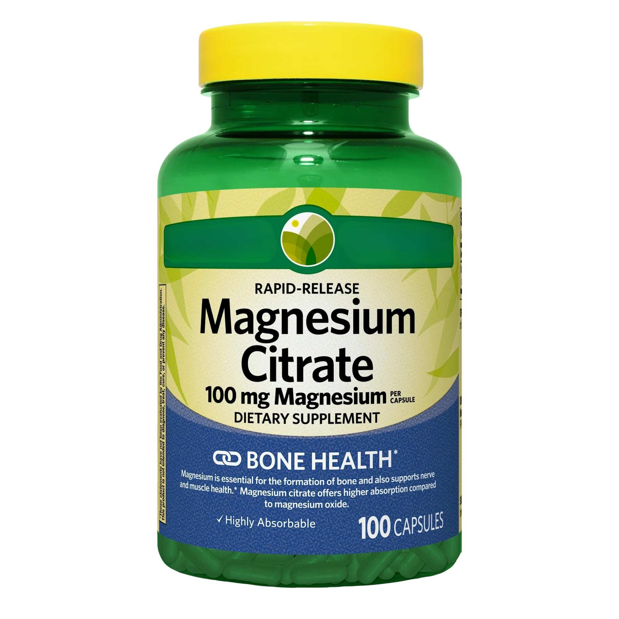 KP+ Magnesium | Magnesium Citrate 100 mg | Bone & Muscle Health Support | Rapid-Release Capsules | 100 Count | Dietary Supplement | Pack of 1