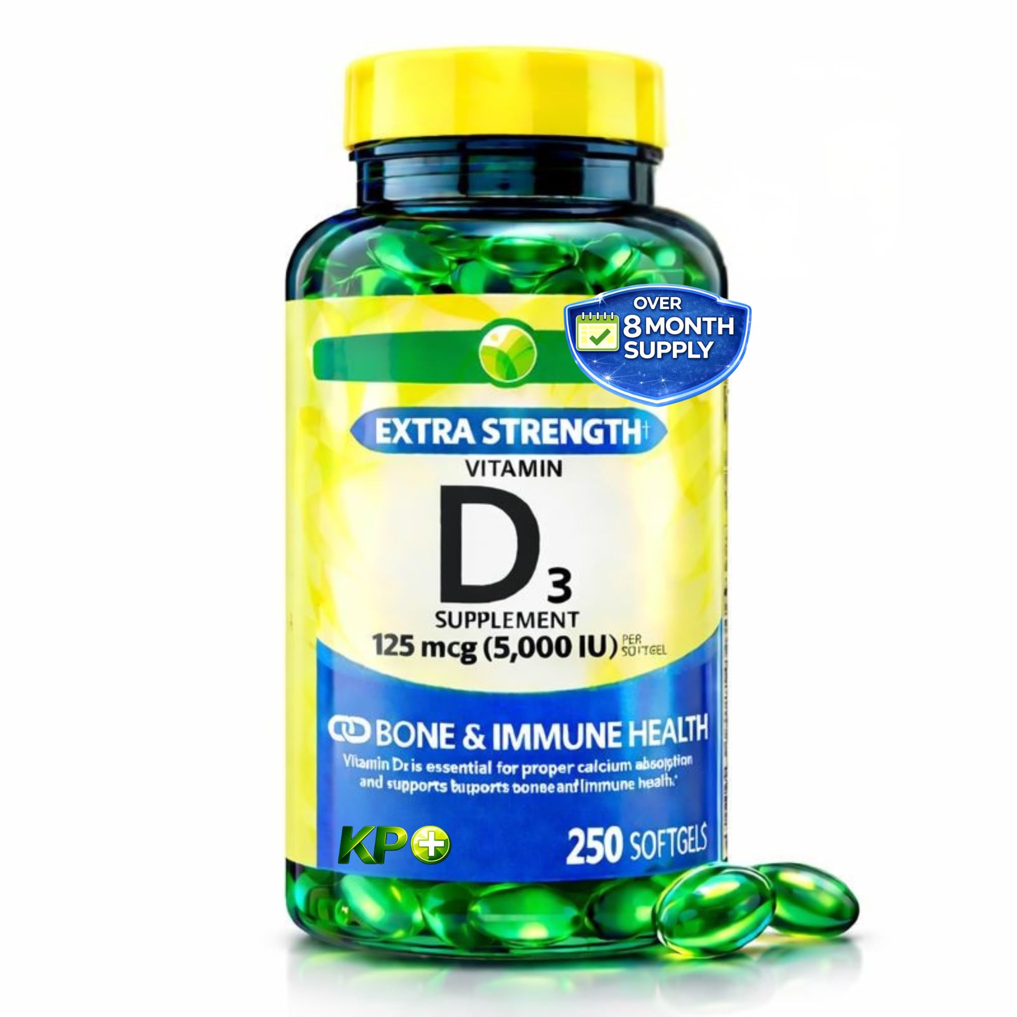 KP+ Vitamin D3 125 mcg (5 000 IU) | Bone & Immune Health | Gluten Free | 250 Softgels | Pack of 1