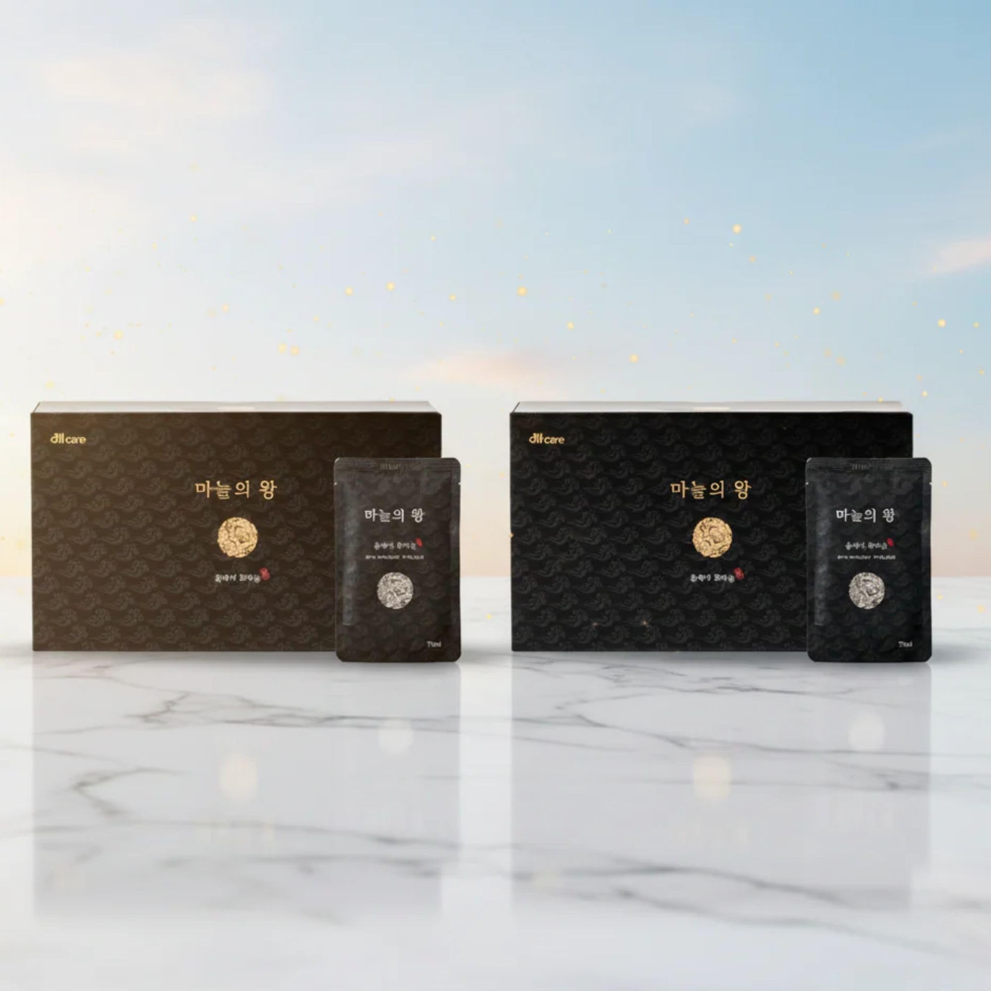 Experience the depth of flavor and nutrition in every pouch of All-Care Black Garlic Extract, made from premium Uiseong garlic, Korea's most famous garlic region. Carefully fermented under controlled temperature and humidity, this extract captures the natural sweetness and smooth richness that only true black garlic can offer. Each pack contains 100 real black garlic, slowly aged for several days at 40–90 C to transform sharp raw garlic into a mellow, slightly sweet superfood tonic that's easy to drink and gentle on the stomach. Crafted with integrity by a certified Master of Black Garlic in Uiseong, this extract delivers powerful antioxidants and natural energy support in every sip — helping you maintain vitality, support your immune system, and feel your best every day. Key Features Made with premium Uiseong garlic, known for its exceptional quality Slow-fermented for rich flavor and enhanced nutrients Naturally sweet and smooth taste without bitterness Rich in antioxidants, S-allyl cysteine, and other beneficial compounds Produced by a certified master artisan in Uiseong, Korea Convenient ready-to-drink pouches (30 packs × 70 ml each) Suggested Use Take 1 pouch daily. Best enjoyed at room temperature or slightly chilled. Ingredients 100 Black Garlic Extract (Uiseong garlic, purified water) Storage Store in a cool, dry place. Avoid direct sunlight. Refrigerate after opening.