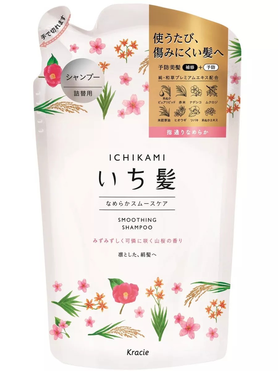 Rice bran moisturizes, leaving hair soft, smooth, and pleasant to the touch. Belamcanda extract nourishes the scalp and supplies vitamins and microelements to the hair follicle, providing a powerful preventative against hair loss. Camellia japonica extract restores hair structure and imparts a delicate fragrance. Directions for use: Apply shampoo to damp hair, massage gently, and rinse with plenty of water. Secure the result with hair conditioner from the same series Kracie ICHIKAMI Smoothing.