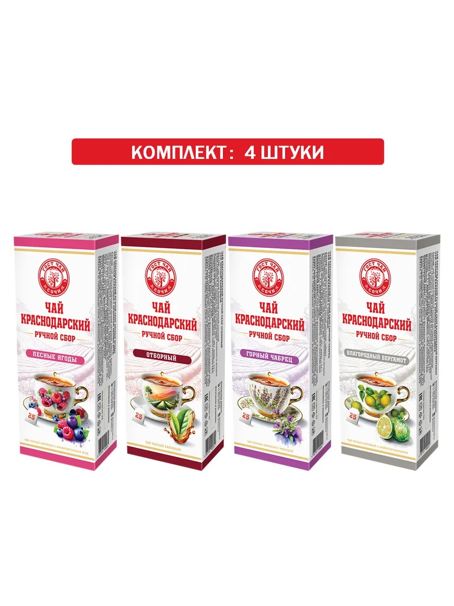 Краснодарский чай Ручной Сбор 25 пак.4 пачки по 50 г. набор Ассорти №2