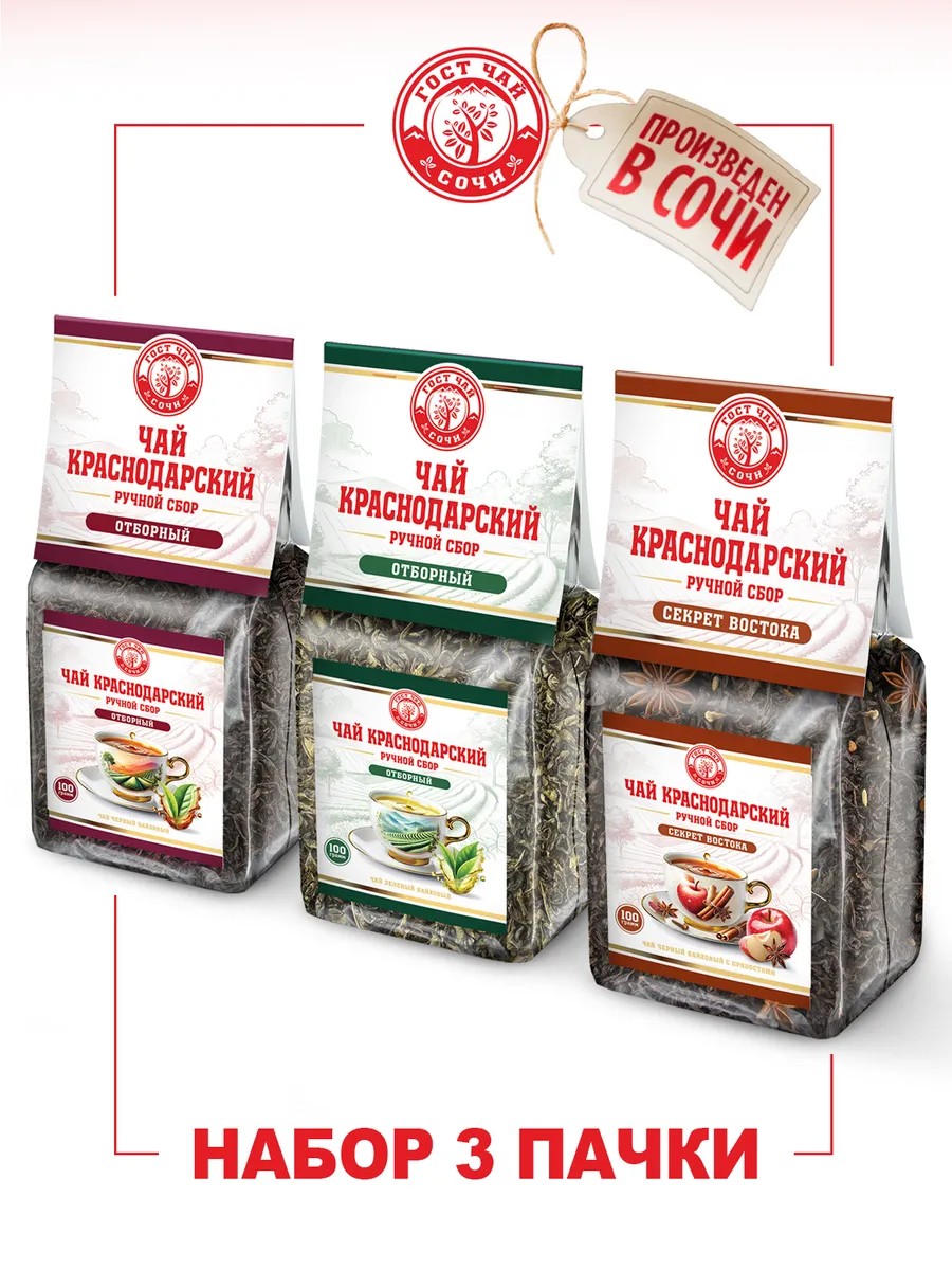Краснодарский чай Ручной Сбор 300г набор 3 пачки по 100гр № 13
